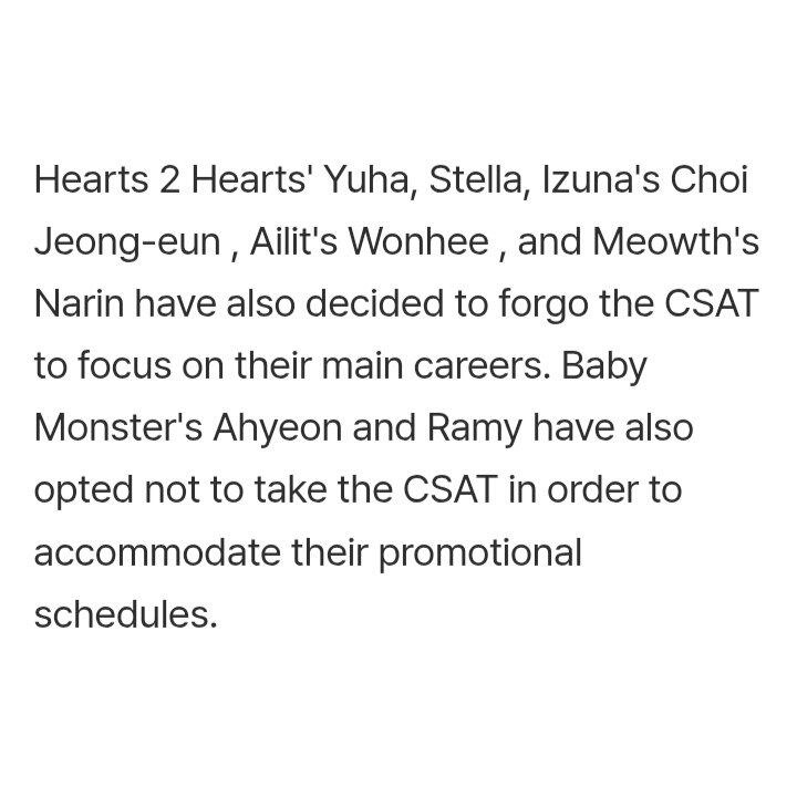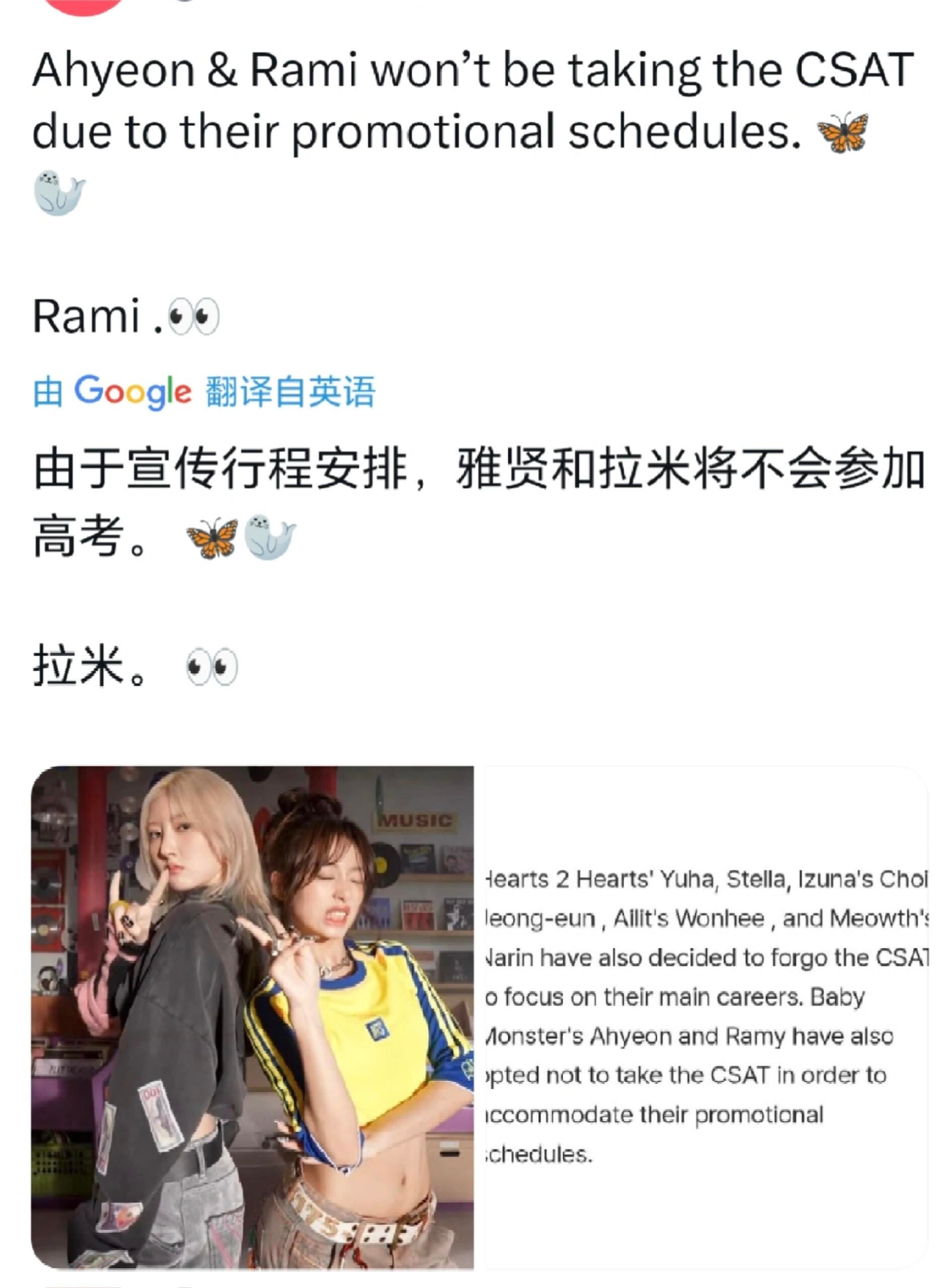 BABYMONSTER的Ahyeon和Rami因为行程安排,不参加高考