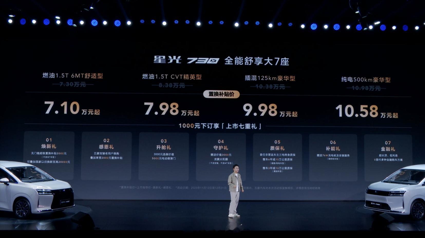 正式上市!7.1 万起享全能大 7 座。作为五菱第 800 万台下线 MPV,新车携燃油 / 插混 / 纯电三动力而来,2910mm 超长轴距搭配 2+2+3 黄金布局,第三排空间利用率 88%,1202L 拓展后备厢 + 25 处储物空间,全家出行超从容~插混版 1100km 综合续航 + 5.3L 亏电油耗,纯电版 500km 续航每公里 7 分钱,燃油版 1.5T 强动力兼顾耐用。六环高强钢车身 + 三电终身质保,540° 全景影像 + 双侧电动侧滑门,安全舒适拉满!一车三动力、真 7 座大空间、用车 0 焦虑 ... 真的是人民需要什么,五菱就造什么。