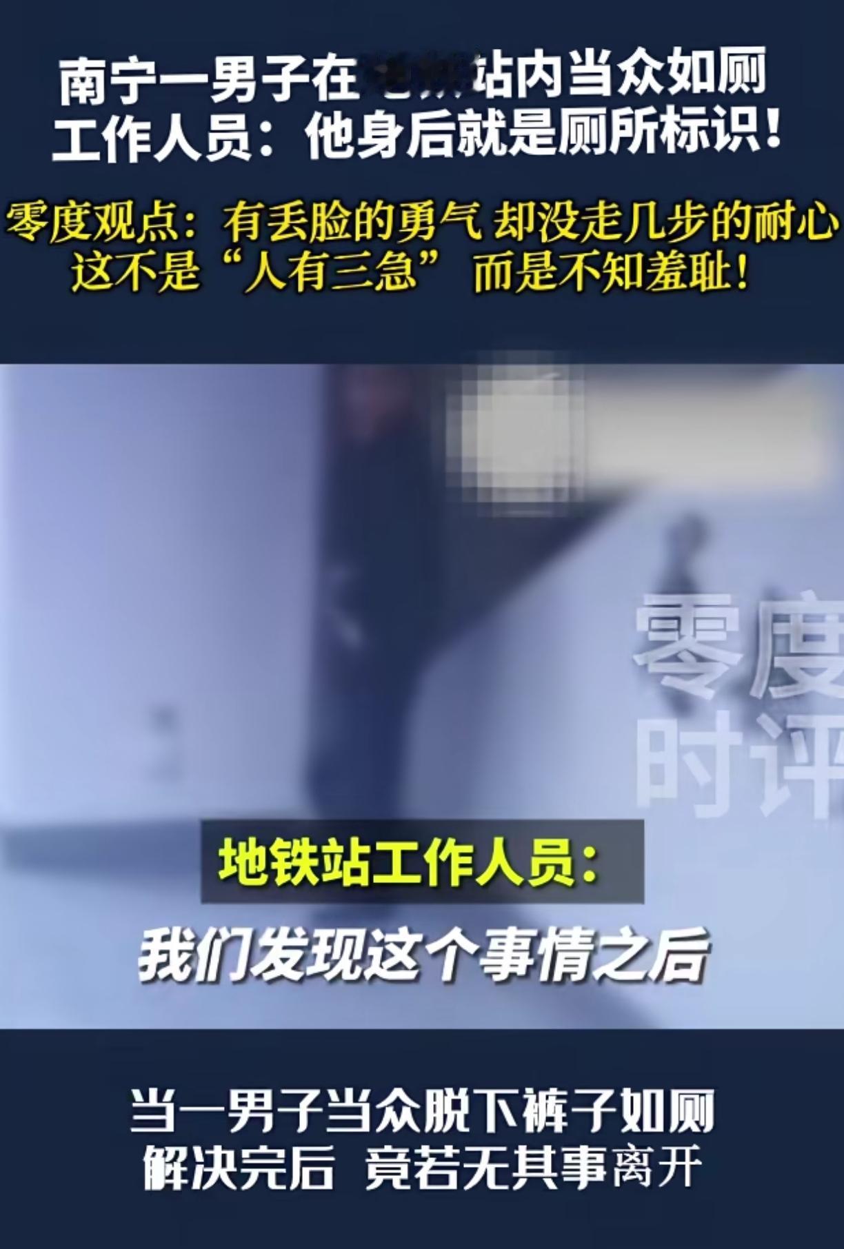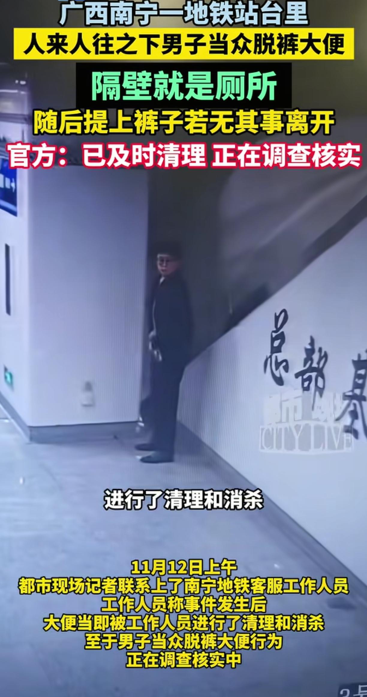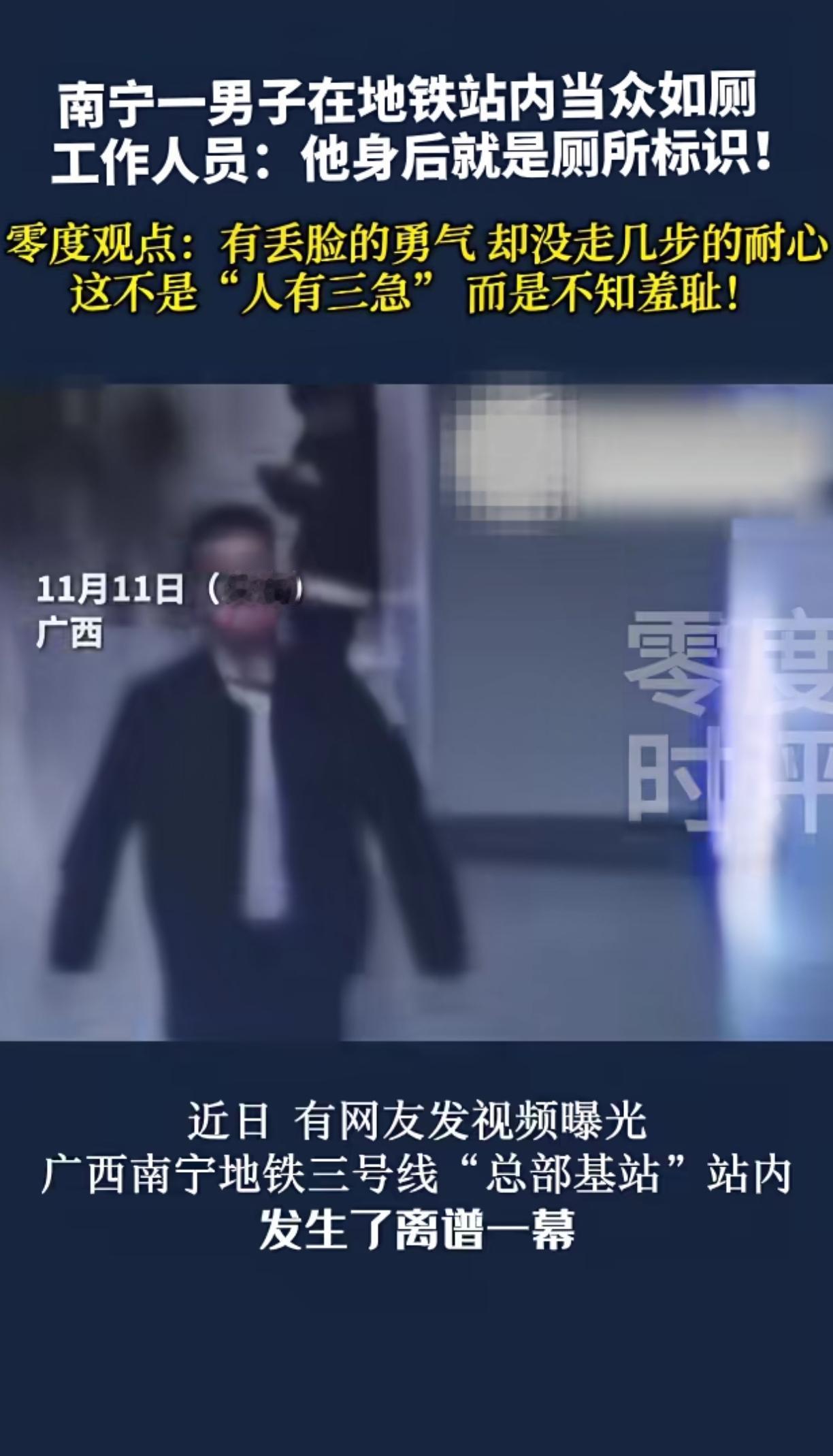 南宁地铁站当众脱裤拉粑粑的男子叫张某宇某健,宜家鸿(萌)汽车里的销售顾问,抱歉以这种方式认识你,让我见识到了什么叫“人不可貌相”! 身穿行政夹克,戴着眼镜看起来文质彬彬,穿着也像个体面人,可惜做的事不体面,原视频里,他走到角落,左右看人,解皮带,脱裤子,蹲下,拉,一秒收工,提裤子,左右观望,走人。 一套操作行云流水,一点多余的动作都没有! 咱也不知道他家人邻居同事老师同学都刷到了没? 听评论区还有人说“是弟弟的大学室友,估计已经社s了”,不知道下次见到熟人他该怎么自处,兄弟那是车站,不是无人区啊! 主要是屁股都没擦,直接拉起裤子就走人,还走出了一种自信感,实在是牛! 有人怀疑他应该是来做任务的,要么是车没卖出去来受处罚的;也有人怀疑他是用来盖近期南宁二中的热度的,反正不管出于什么目的,脸反正丢干净了,而且他做到了只要自己不尴尬,尴尬的绝对是车站工作人员和保洁阿姨! 有网友说“我是能理解,这哥们估计是真忍不住了,但是我我宁愿拉裤子里”。 还有人说“这不是个例,我家旁边有个公园,很多男的露天上厕所,问题是往前走50米就是公厕”! 确实,这个视频里,工作人员明确说了“厕所就在边上”,再有三急,跑几步也该去厕所了吧。 对这人的行为,大伙各种看法都有,事件现在也在调查中,我想这小伙还有一次证明自己的机会,那就是看他拉的硬的还是稀的,硬的确实不可原谅,稀得倒是可以理解那么一点点,你们怎么看?