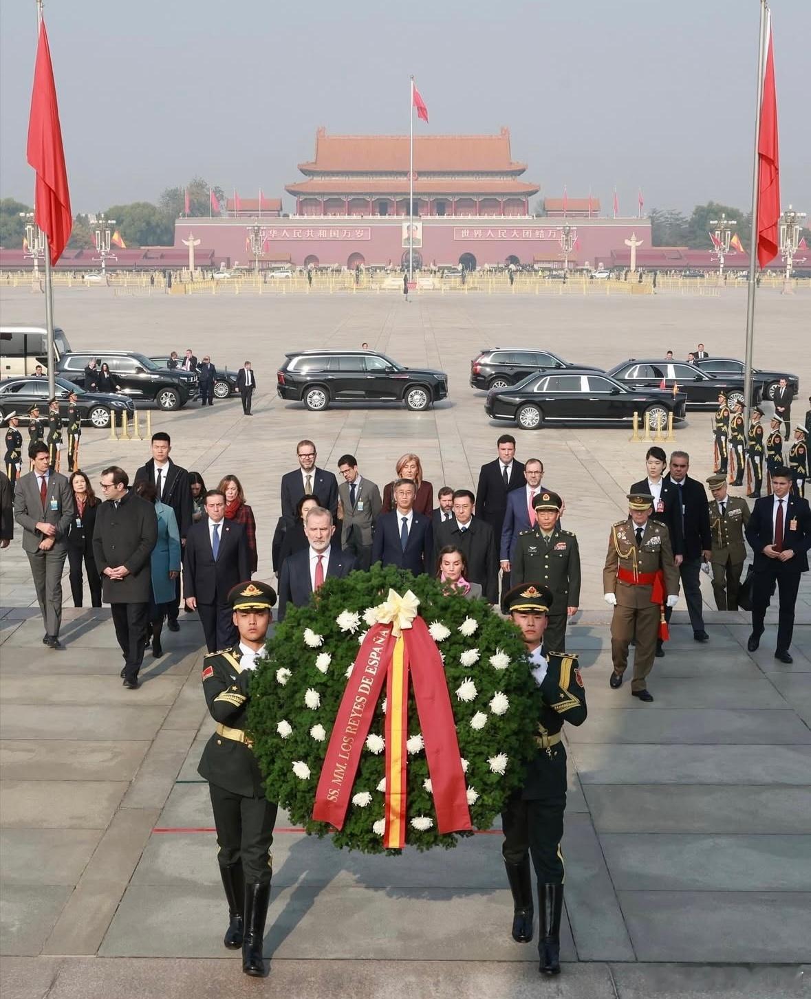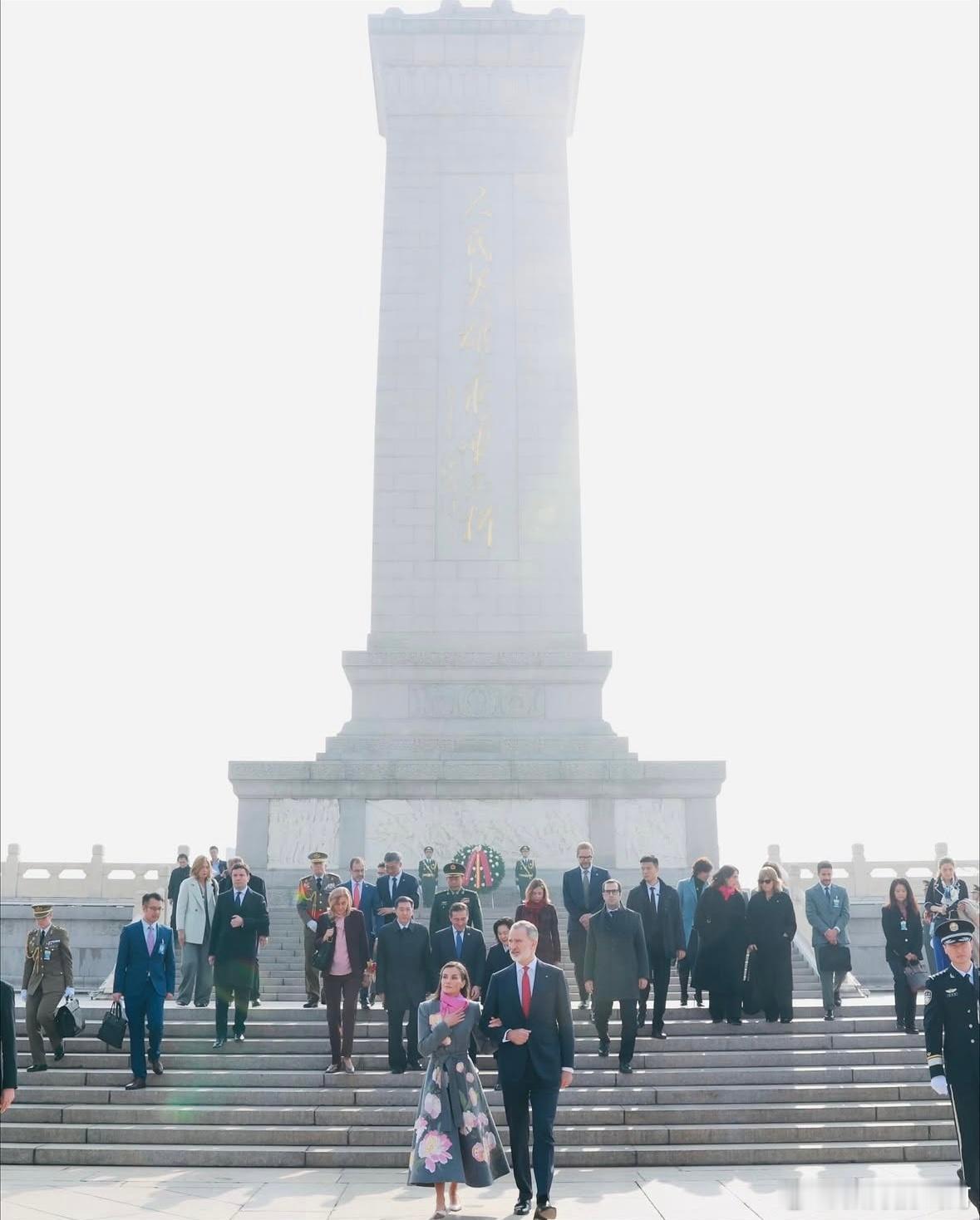 向人民英雄纪念碑敬献花圈。