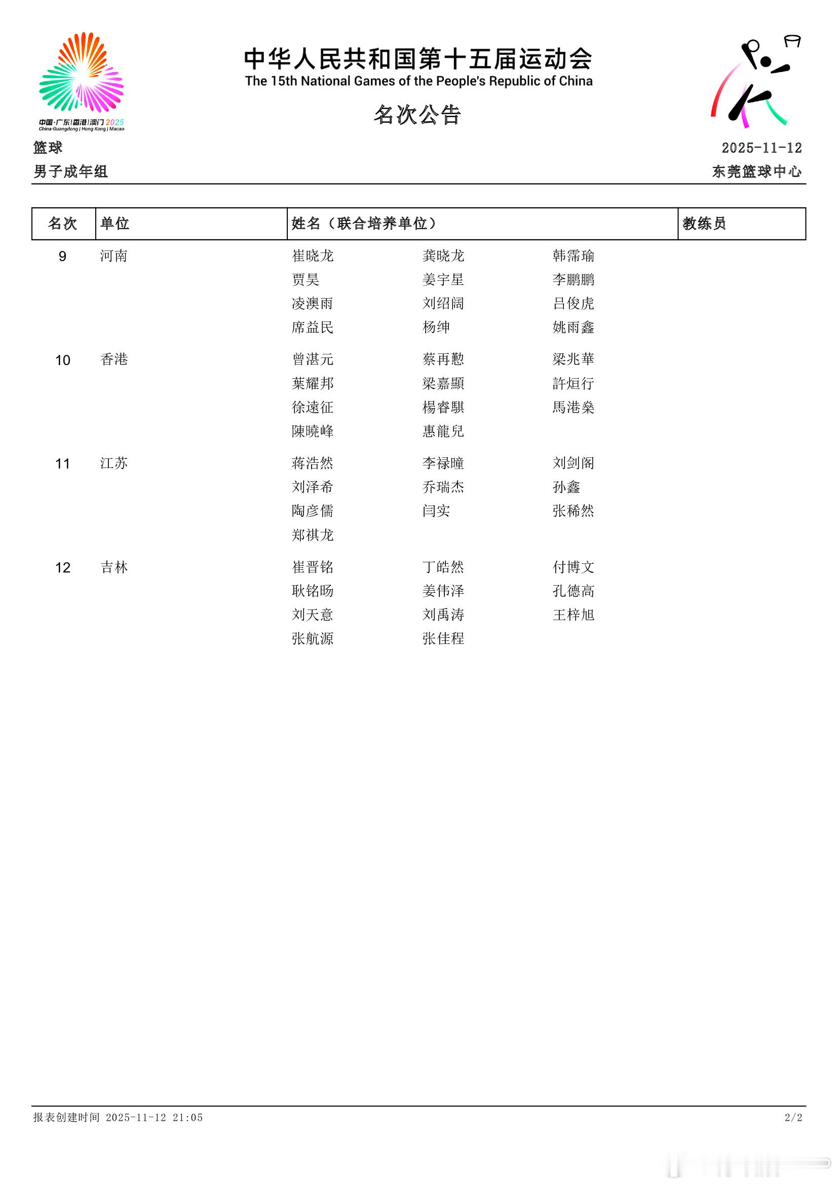 第十五届全运会男篮成年组最终成绩排名公布,体育总局对篮球表彰前12名:1、广东;2、浙江;3、四川;4、辽宁;5、山东;6、北京;7、上海;8、天津;9、河南;10、香港;11、江苏;12、吉林。其中,广东男篮是历史第三次(2009年、2013年和2025年)成为全运会冠军,夺冠次数独居第二位,仅次于七次夺冠的八一男篮;浙江男篮爆出大冷门,历史首次加冕全运会亚军,四川男篮则时隔60年重登全运会领奖台(1965年全运会四川男篮是亚军)。由于自2017年全运会时起,为纠正金牌至上的功利理念,体育总局从此不再对外发布全运会的官方金牌榜和奖牌榜,官方对金牌数量讳莫如深,随之而来的则是,三大球的冠军计提三块金牌、亚军计提两块金牌、季军计提一块金牌的激励举措也已无人提及,但各省还是会私下自行排名。有鉴于此,我觉得像今年创造历史的浙江男篮其实完全可以享受金牌待遇。近年来,振兴三大球已成为体育强国建设的重要标志,本届全运会历史首次设置了八个篮球组别,其中五人制篮球历史首次在男女篮中各设三个组别,这些举措都是旨在撬动各省发展篮球运动的积极性。希望更多省份能积极投身到振兴三大球的事业中来。