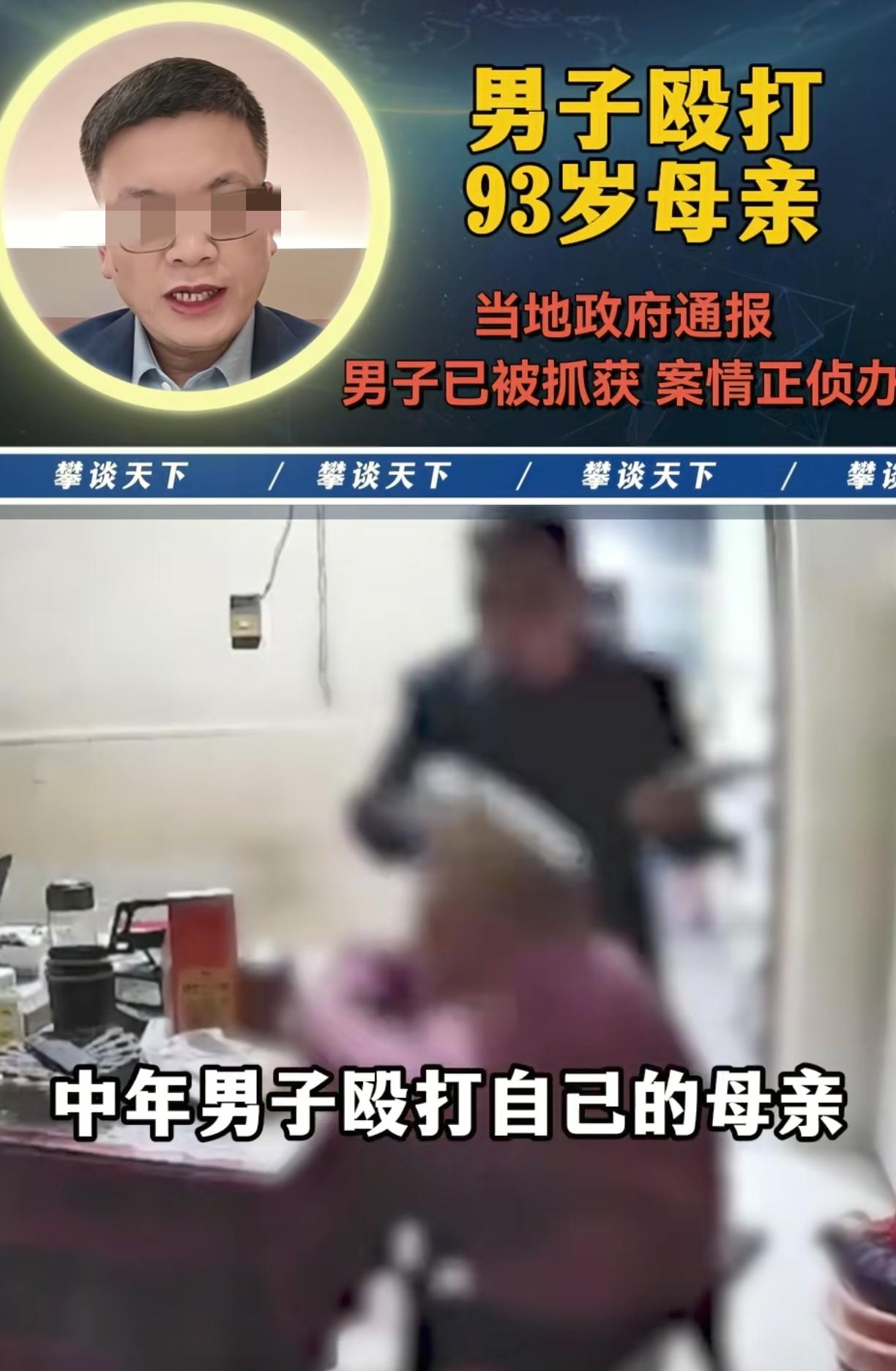 那个打93岁老母亲的杨某中,打完母亲后嘴里还一直在骂“老不s的东西”,这是什么混账儿子! 有网友说杨某对母亲动手的原因“根本不是网上瞎传的什么钱的事或者家里有啥大矛盾,其实就是老太太饿了,问他要五块钱买点吃的,就这么点小事”。 因为视频里一直讲着当地方言,我听了一两遍都没听懂他们为了什么吵了起来,当时杨某坐在椅子上接电话,电话里的女子应该是和男子在聊老人的事情,老人开始坐在厨房,后面听女子在说自己就走到餐桌边去听,老人说了一句什么话,男子就动怒了,走过来挂断视频就开始给了老人一个耳光,老人疼的呜呜大哭,随后柱着拐杖往屋外走去,这时杨某还不解气,直接把老人拉回压在地上da,被da后的老人躺在地上突然不动了,可没过一会儿老人就爬起来往屋外走去了。 杨某骂骂咧咧的回到了当时的座位,继续吃饭! 好冷漠的人啊,俗话说“养儿防老”,这防住了啥,活到这把岁数,最后还被儿子da骂,没得人格尊严,唉! 也不知道警方通报完了这事以后,老人该如何自保,以后又该住在哪里,如果这儿子有良心,悔过了还好,要是他不悔改,记仇,不再让老人住他家了,这90多岁的老人该何去何从啊?