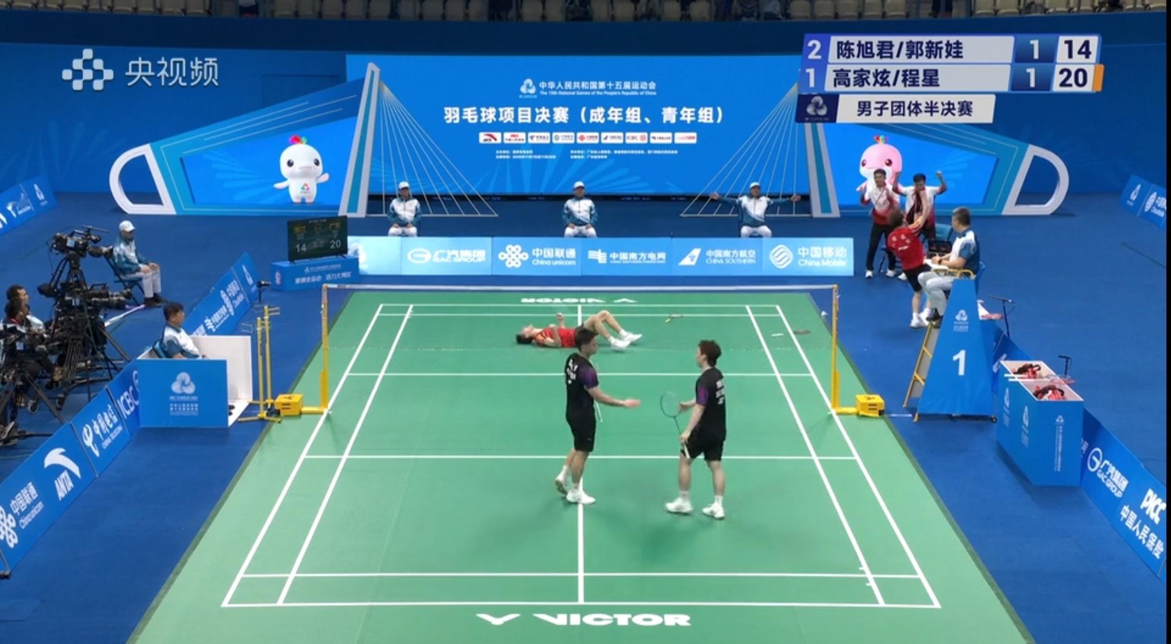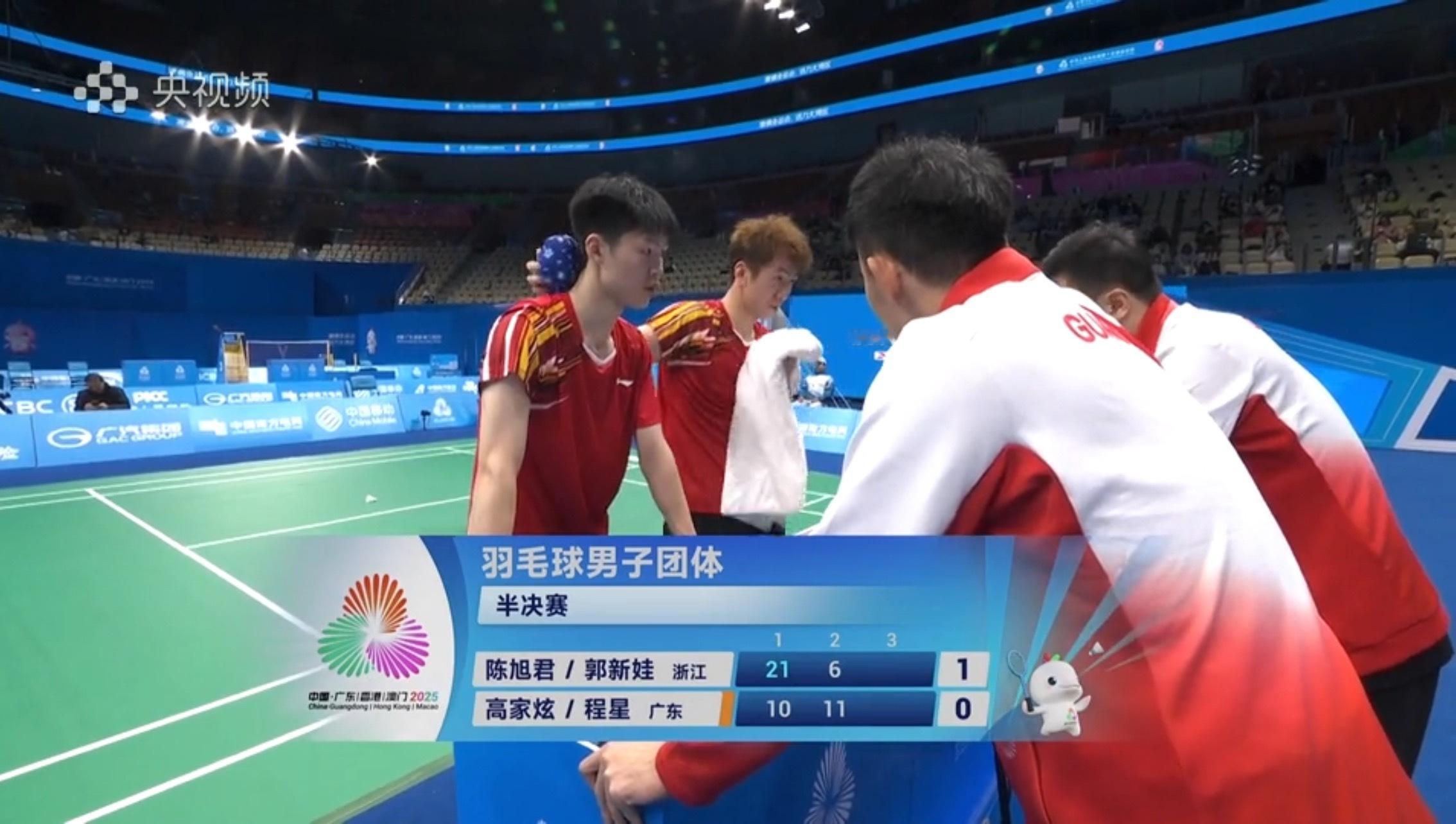 毛球广东2-2浙江了三单 陈文杰VS周新宇赢了就进决赛了