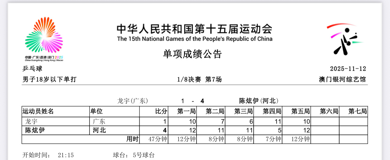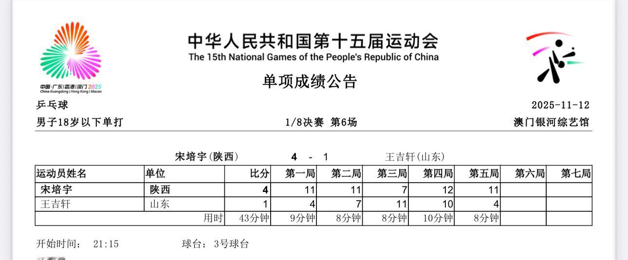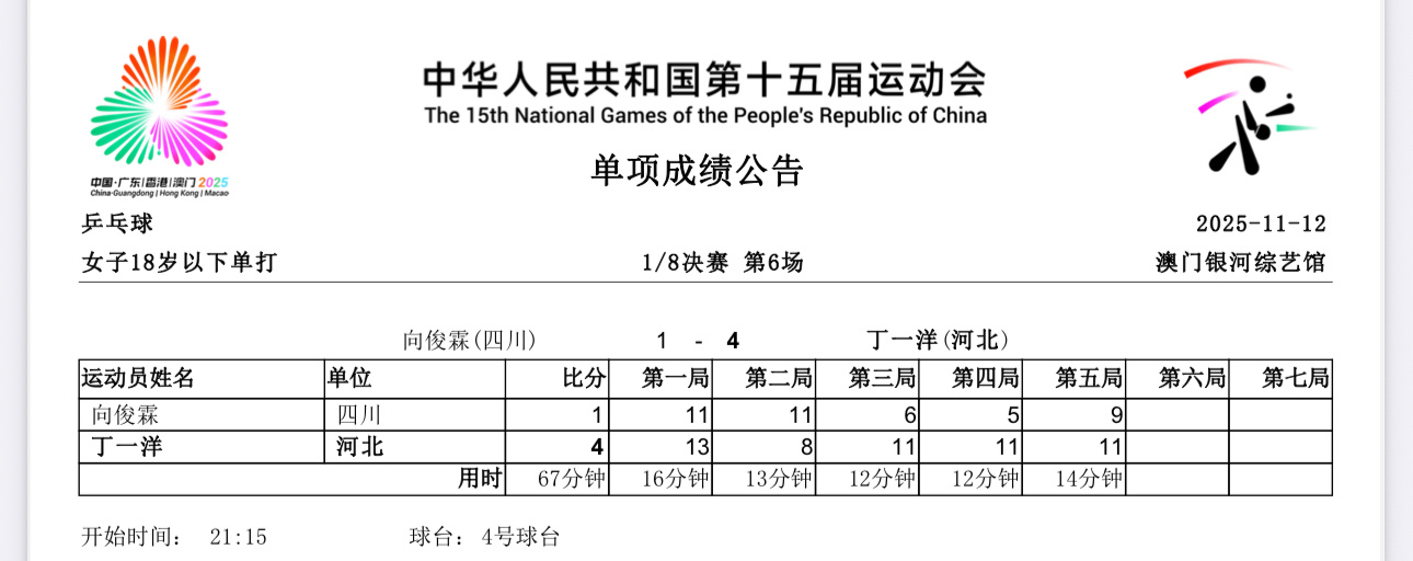 2025大湾区全运会U18男女子单打周锦泉4-3陈恒达陈炫伊4-1龙宇费浚航4-0伍毅菲宋培宇4-1王吉轩徐慧尧4-1白思文祝启慧4-1赵王琪姚睿轩4-0谢雨萱丁一洋4-1向俊霖徐慧尧(陕西)直板 丁一洋(河北)削球打进八强根据赛前颁布的规则 入选国青队