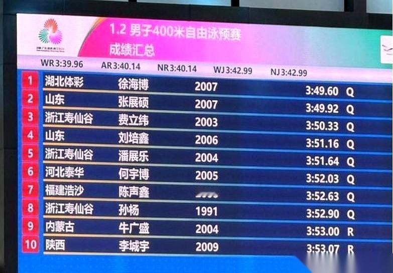我跟你讲,今天看游泳比赛,有个瞬间,我心里咯噔一下。 全场,就他一个90后。孙杨,1991年的。 剩下的一水儿00后,最小的那个,2007年的。 2007年……我的天,那是什么概念? 就是当孙杨已经站在世界之巅,我们为他摇旗呐喊的时候,那个叫张展硕的小孩,可能才刚学会怎么用勺子吃饭。 现在,他们站在了同一个决赛的跳台上。 这哪是游泳比赛啊。 这简直就是一场,用秒表计时的,公开的时代交接仪式。 看着孙杨,真的,你心里会涌上一股说不清的滋味。不是惋惜,是肃然起敬。 他不需要再向任何人证明什么了。泳池里的水,早就记住了他所有的辉煌。 可他还在。还在用那副被岁月和伤病反复打磨过的身体,跟一群小他十几岁的“猛兽”们搏杀。 为啥? 说白了,争的早就不是输赢了,争的是一口气。是一个老兵,对站了半辈子的战场的,最后那点眷恋和尊严。 而那个叫张展硕的07后,太猛了。 他游起来的时候,你看到的不是技巧,是野心,是那种“未来就是我的,谁也别抢”的霸气。 长江后浪推前浪,听着有点残忍,但你看着看着,又会忍不住微笑。 老的,没放弃自己的执着。 小的,接过了滚烫的火炬。 真好。 这大概就是我们总对竞技体育热泪盈眶的原因吧。