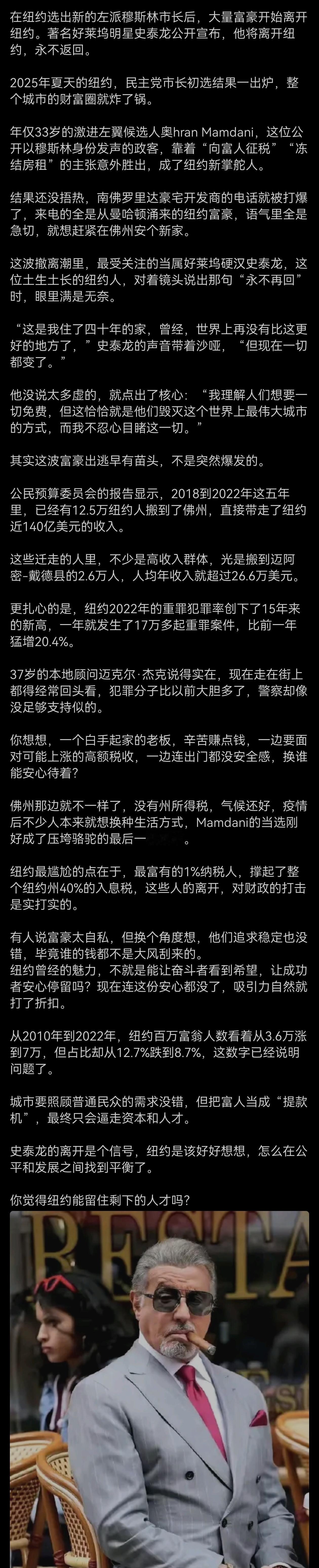 在纽约选出新的左派穆斯林市长后,大量富豪开始离开纽约。逃到哪里去呢?