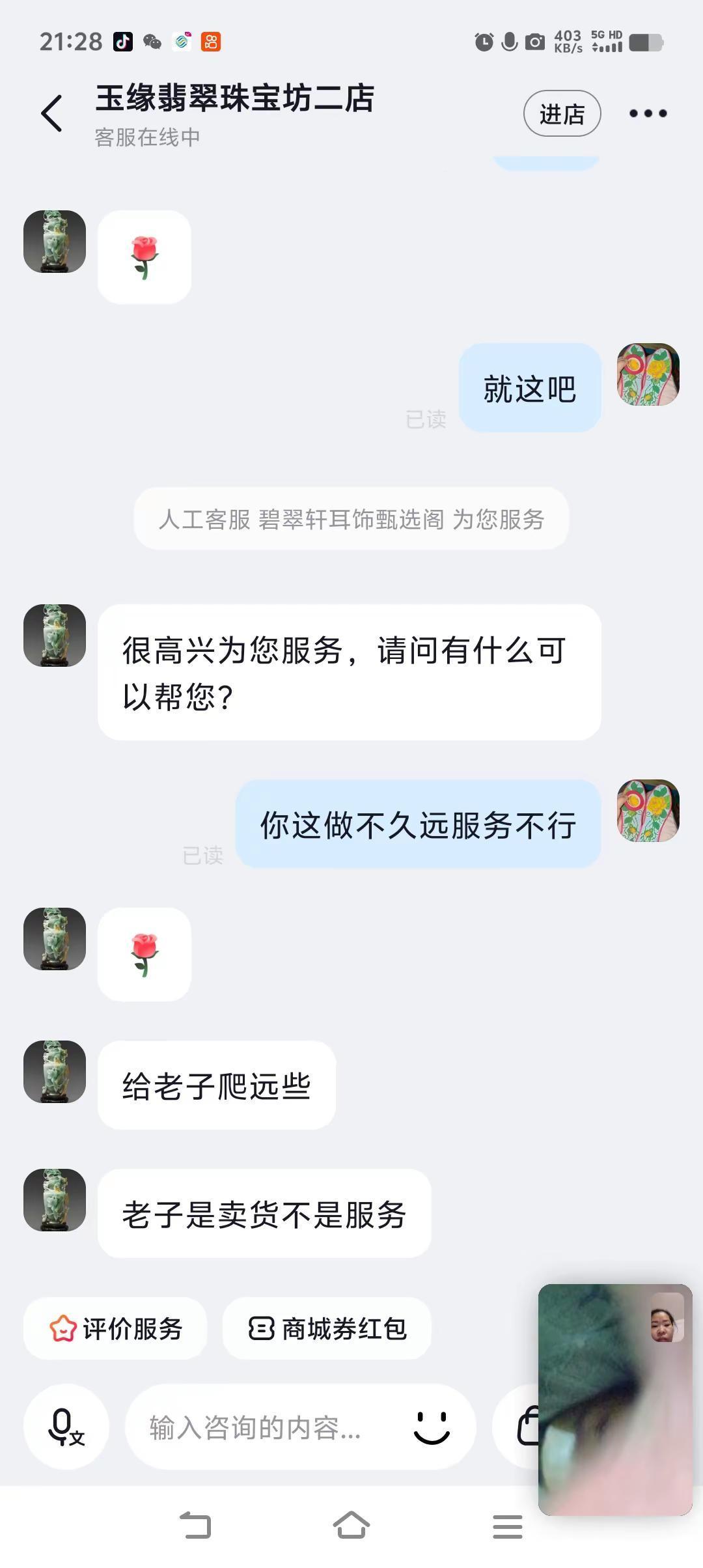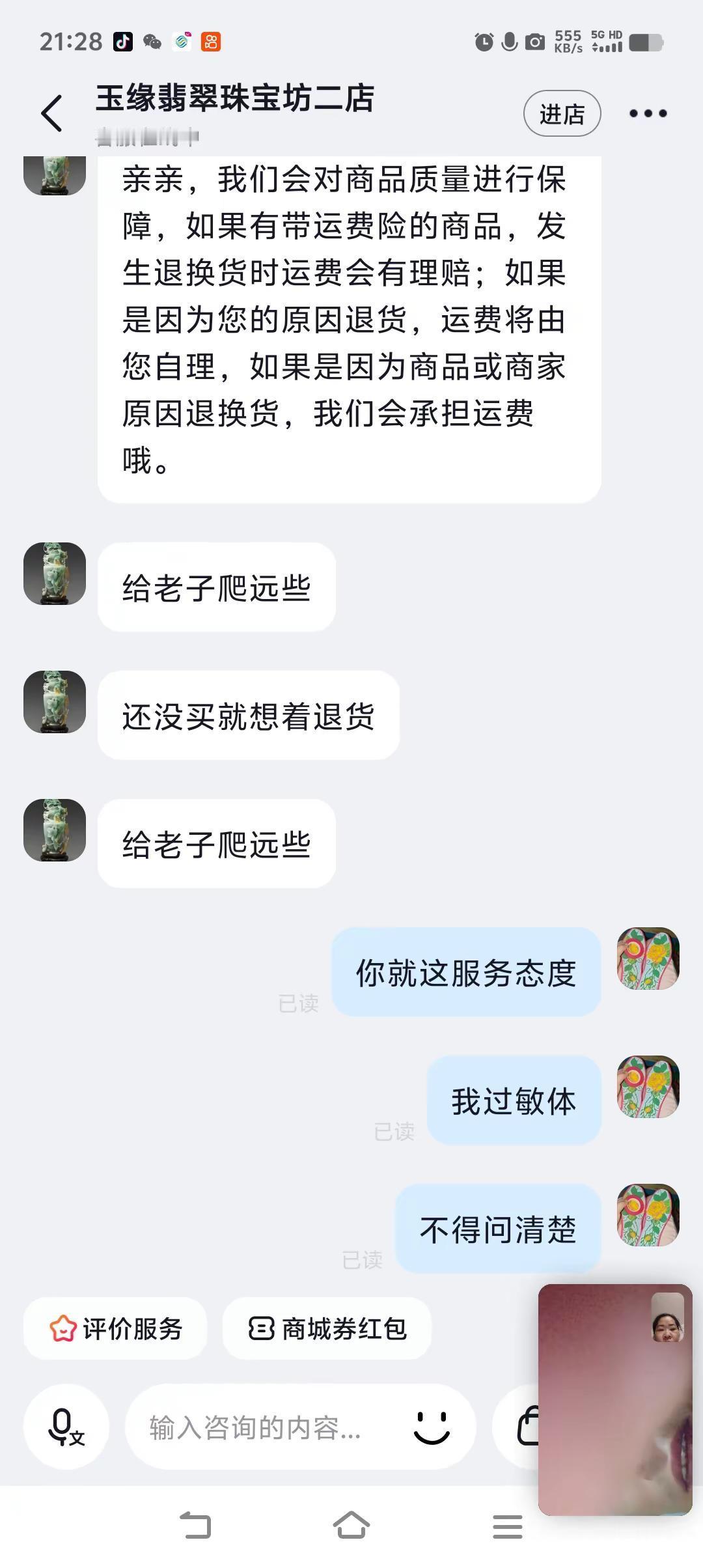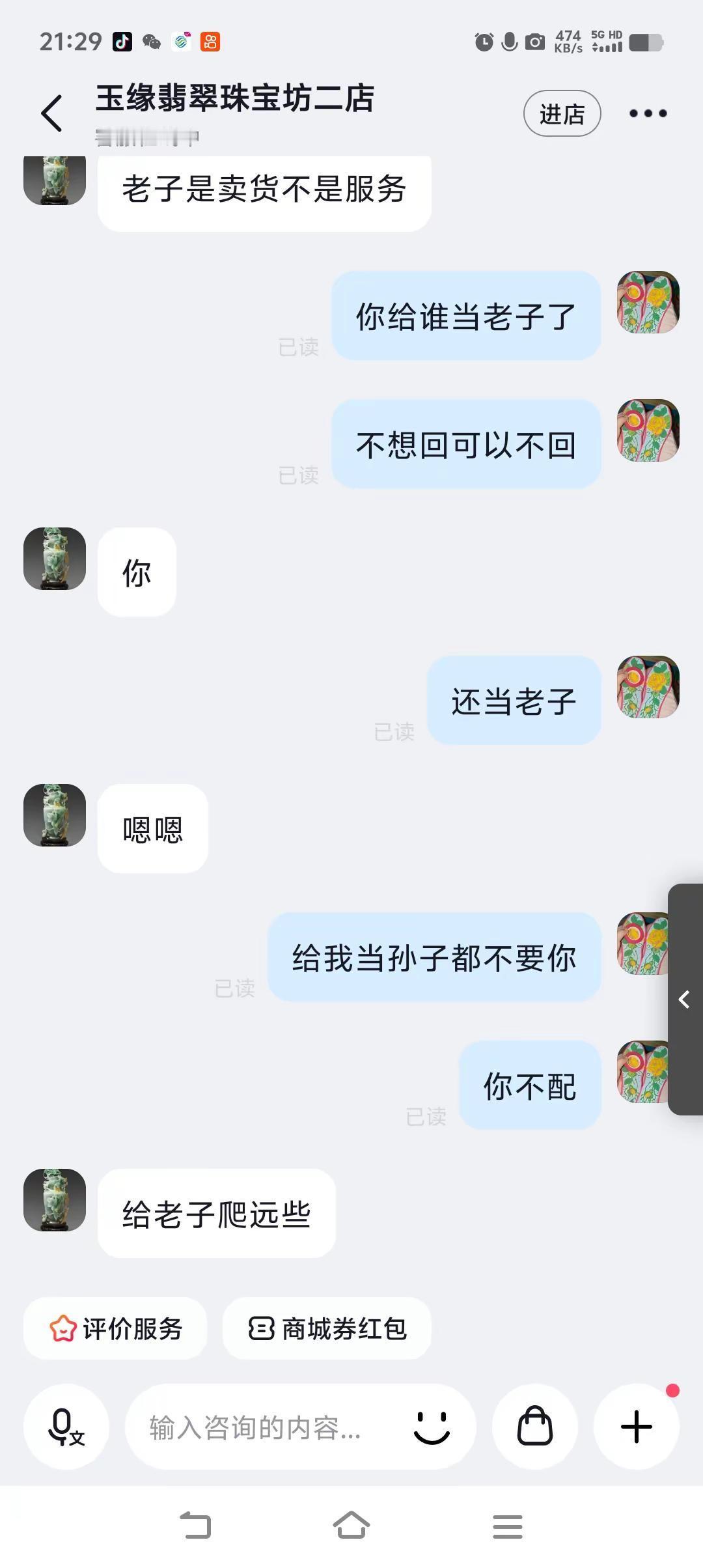 因为过敏皮肤,所以多问了两句,就想给当老子。张嘴闭嘴就是老子。就这服务态度,你们觉得生意会好吗?