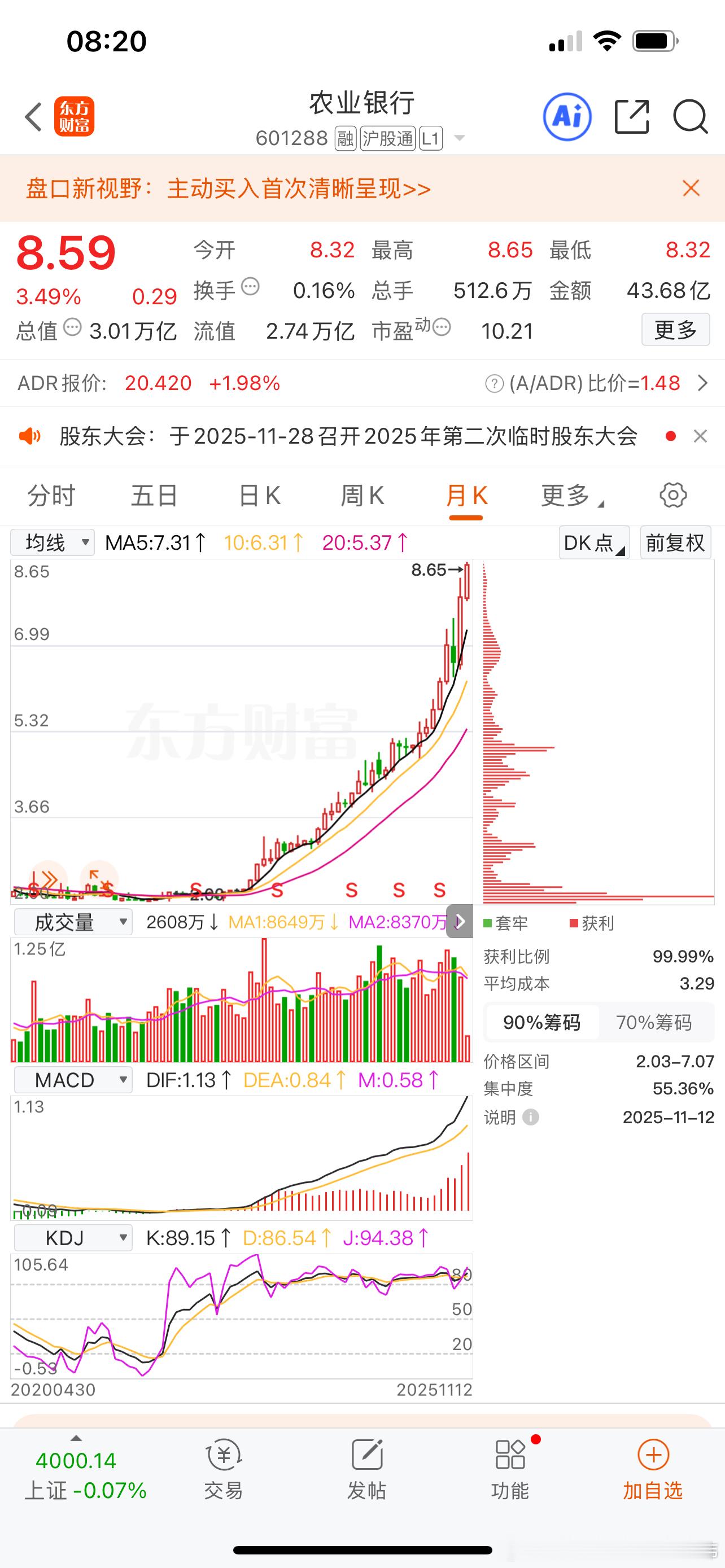 他们为什么这么牛? 曾经有一个确定性的机会摆在我们面前,我们没有珍惜,他俩是A股市场5000多只股票中价值投资的唯二标的…… 市盈率分别8倍10倍,市净率1.1倍0.76倍,今年三季报净利润还在增长,前三季度净利润都超过2200亿两市谁与争锋?连续10年每年股息率超过3%远超银行存款利率,他们就是农业银行和工商银行,其中农业银行连续10年股息率超过4%,买银行股远高于存银行收益的典型,中国价值投资的典范,A股市场美式慢牛走势的中流砥柱…… 200倍市盈率的大科技被疯抢,他们盈利几何?分红几何?未来前景几何?亏损的垃圾股常走妖,亏损它们拿什么分红?投资和投机是有本质区别的,买股票就是买公司,买公司本质上就是成为公司股东,成为股东是为了获得股息分红,公司没有盈利能力就没有分红能力,没有分红能力的股票本质上毫无价值!炒题材就是讲故事,故事最后都会酿成事故! 超级资金最近2年多以来一直持有拉升银行板块,所以上证指数天天跌不动,因为银行、保险等超级权重股估值依然偏低,所以也是历史新高不断,A股美式慢牛走势依然在路上!要学会有所为有所不为,能抵制市场各种上涨诱惑太难了,所以绝大多数散户注定是被资金驱赶收割的,段永平几次公开买入腾讯控股、贵州茅台的时机,看中的就是公司超级盈利能力,稳健盈利能力,盈利能力是股息的保障,股息是股票价值的基石!价值投资是散户盈利的必然归宿,否则投机必然亏损惨重!北京快乐投资人李伟 原创