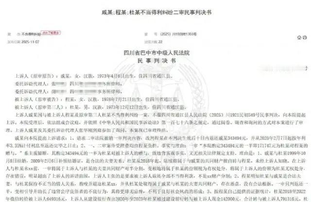 “防火防盗防闺蜜”!这话,在四川戚女士这成了真,她给醉酒丈夫手机充电时,发现丈夫和闺蜜有婚外情。原来两家一起务过工,戚女士和程女士处成闺蜜,她意外看到丈夫与程女士暧昧聊天记录和特殊转账,丈夫4年间给对方转了79万多。 (来源:都市现场) 戚女士和杜先生1999年结婚,和程女士、杨某甲夫妇是多年好友。 2016年两家在山西运城务工,戚女士和程女士处成了闺蜜。 2022年,杜先生醉酒,戚女士帮他充电,竟看到丈夫和程女士以老公、老婆互称的暧昧聊天记录,还有520、1314元等特殊转账。 戚女士当时就懵了,自己和程女士处了这么多年闺蜜,杜先生和杨某甲也是多年交情,怎么就能搞出这种事。 原来2018年起两人就搞起了婚外情,这4年里,杜先生在2018年至2022年这4年间,微 信 共计向程女士转款649316元,通过银行向程某转款142000元,共计转款791316元。 程女士也不是没给杜先生转过钱,自2018年至2022年向杜先生共计转款447822元,这么一算,程女士实际收取343494元。 事发后,杜先生根本没打算和程女士断干净,还继续保持着那见不得人的关系。 戚女士看着自己辛苦经营的家,被这两个最信任的人搅得一团糟,心里那股子气有点不服。 她想着,自己和杜先生这么多年夫妻,一起打拼,家里的钱都是两人共同挣来的,杜先生倒好,一声不吭就把大把的钱转给程女士,这算怎么回事。 戚女士觉得不能就这么算了,于是起诉了程女士,提出诉求:要让程女士把不该拿的钱都还回来。 一审法院审理认为,双方有经济往来,就酌定让程女士返还一半净转出金额,也就是171747元。 戚女士觉得这钱本来就是夫妻共同财产,杜先生没经过她同意就转出去,而且这两人还是婚外情,这赠与怎么能算数,于是果断上诉。 关于婚姻关系中的财产问题,《民法典》有规定,夫妻在婚姻关系存续期间所得的财产,为夫妻共同财产,归夫妻共同所有。夫妻对共同财产,有平等的处理权。 杜先生和戚女士结婚多年,那2018年到2022年期间杜先生赚的钱,都属于夫妻共同财产。杜先生没跟戚女士商量,就把大额的钱转给程女士,这明显侵犯了戚女士对夫妻共同财产的平等处理权。 从赠与合同的效力来看,《民法典》规定,民事法律行为有效得满足几个条件,行为人具有相应的民事行为能力,意思表示真实,不违反法律、行政法规的强制性规定,不违背公序良俗。 杜先生和程女士搞婚外情,这本身就违背了公序良俗,他们之间的赠与行为,是基于这种不正当的关系,所以这个赠与合同是无效的。 程女士说那些转账是工程款、借款,可她又拿不出证据来证明。 根据谁主张谁举证的原则,她没办法证明自己的说法,那就得承担不利的后果。 二审法院认为,杜先生在婚姻里擅自处分大额夫妻共同财产给程女士的行为不行,而且婚外情违背公序良俗,基于这的赠与无效,程女士又拿不出转账是工程款或借款的证据,程女士应该把钱全还回来。 程女士说转账是工程款或借款,是不是应该更仔细地查一查? 其实,按照民事诉讼法的规定,当事人对自己提出的主张,有责任提供证据。 程女士没办法拿出证据证明,自然不能采信她的说法。 杜先生也有责任,杜先生擅自处分夫妻共同财产,侵犯了戚女士的权益,戚女士除了可以要求程女士返还财产外,还可以在离婚时,要求杜先生进行赔偿。 最终,二审法院撤销一审,判程女士全额返还戚女士343494元,给戚女士讨回了公道。 婚外情违背公序良俗,基于此的赠与无效,程女士又无法证明转账有其他合法理由,所以全额返还是合理的。