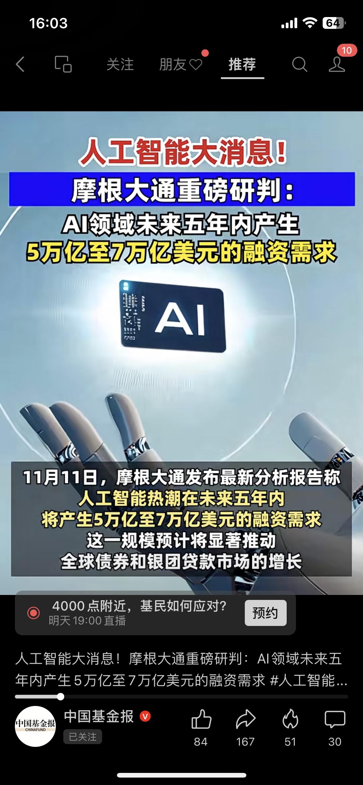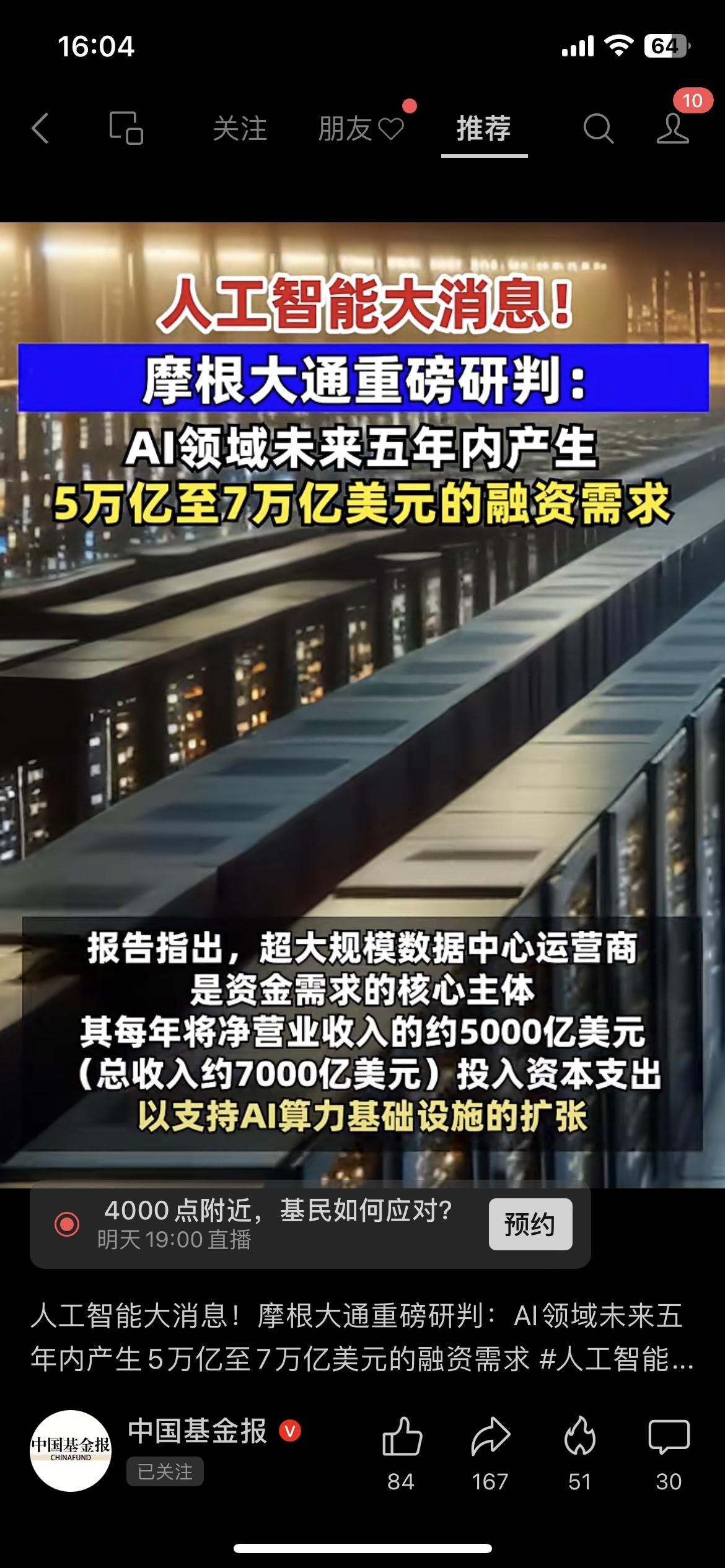 未来5年AI要烧7万亿美元!这钱砸下去,哪些行业要起飞? 摩根大通刚爆了个“炸锅”消息:未来5年,AI领域要花5-7万亿美元融资!这钱堆起来,怕是能把一条街都埋了…钱往哪砸?数据中心、AI芯片、产业落地全是“吞金兽”!中信证券还说“现在是AI早期”——意思是,这波不是炒概念,是真金白银堆未来!感觉AI相关的行业要集体“上天”了,咱们普通人能跟着蹭点红利不?比如搞点相关基金?评论区支支招!你觉得AI最容易赚钱的领域是啥?ai发展新趋势 AI发展战略 AI 行业分析