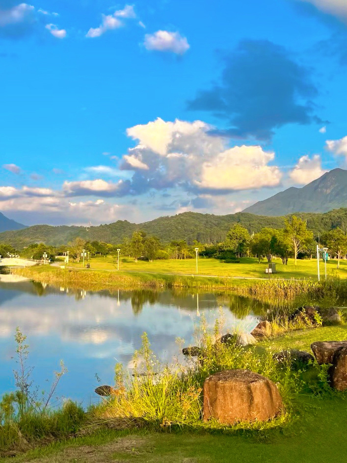 从都湿地公园在广州从化,广州市区开车1小时。公园占地面积很大,在流溪河边,四面环山,草坪面积很大,周未野餐,遛娃,露营,散步好去处导航🔍:直接导航“流溪河从都湿地公园”西门这里有免费🆓停车场🅿️,大概20个车位,也可以停到停车场门口的路边,停车很方便 约上朋友准备好露营🏕️工具,坐在天幕下,品一杯清茶或咖啡,看看流云,读读小说,或者发发呆,孩子在一旁自在的跑跳嬉耍,和大自然亲密的接触