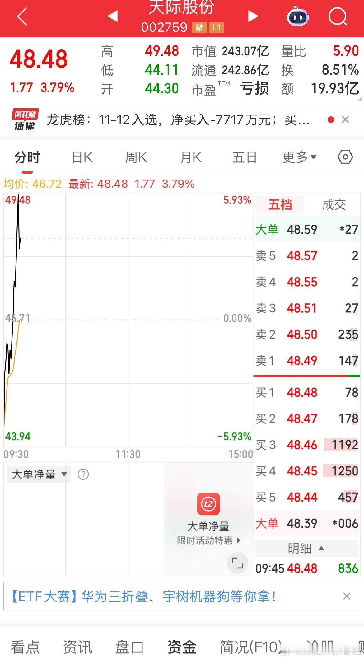 泰和科技开盘收获涨停板 这只票飞掉了 大腿拍断!!