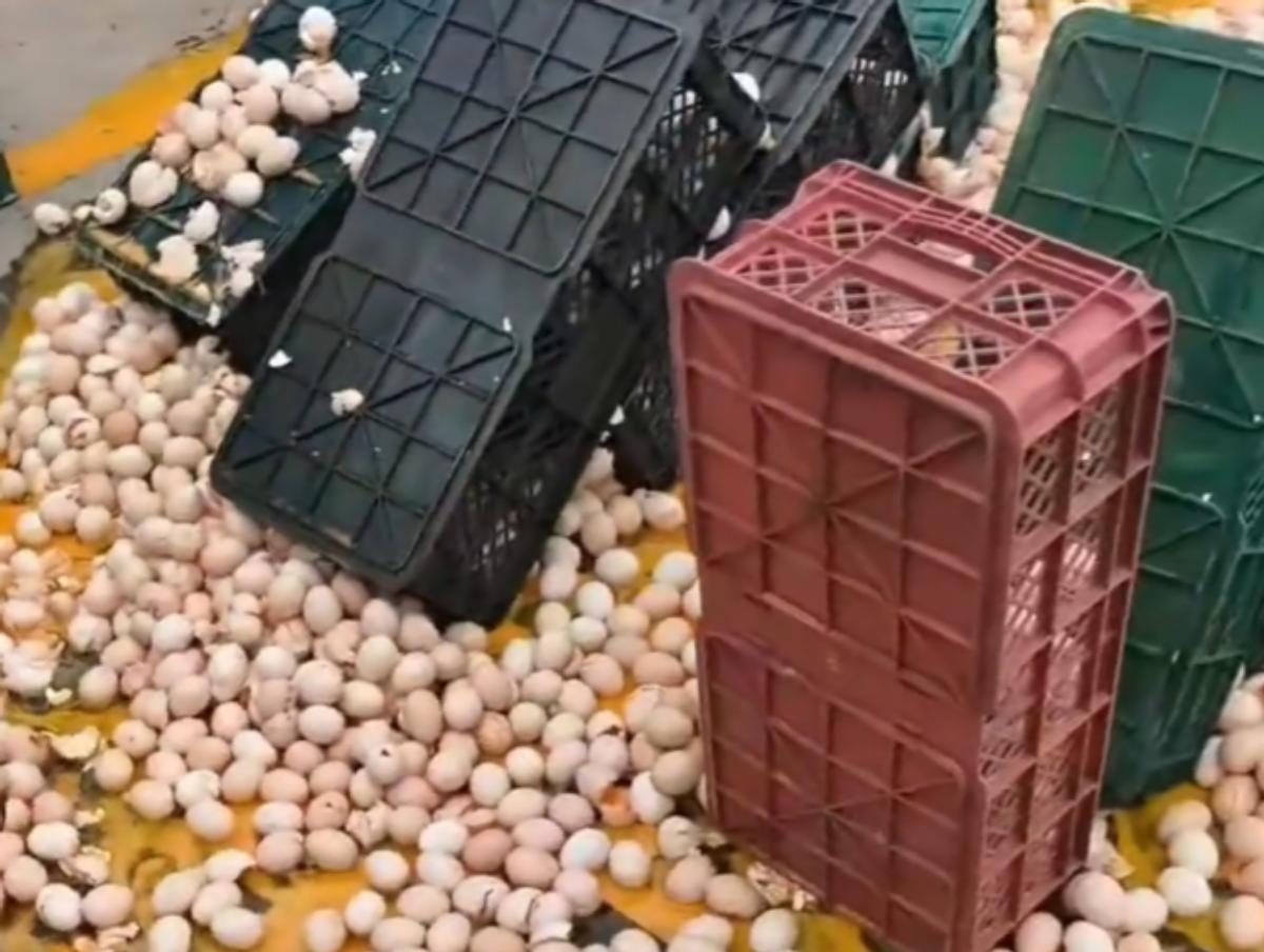 “活该她发财!”11月8日,山东威海,一男子第一天上班,搬运鸡蛋时按错了按钮,导