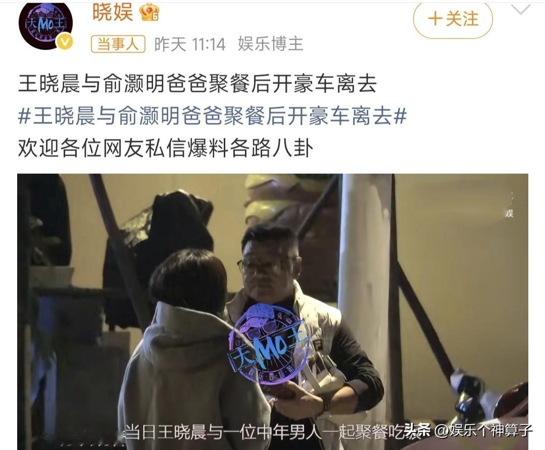 说实话,觉得王晓晨真应该给俞灏明一个名分了! 11月13日,演员王晓晨上了热搜,只不过这一次,不是与俞灏明同框撒糖,而是与男方的爸爸一起聚餐。 八卦媒体晒出一段视频,画面中,王晓晨和 俞灏明的爸爸在饭店门口热聊,非常熟悉的样子,应该不是第一次见面了。 咱就说,跟家长都这样熟悉了,觉得王晓晨真应该给俞灏明一个名分了,尤其是看到网友们的评论。 给人感觉,就好像男方拿不出手,俞灏明一直在上杆子一样。 如果,当时俞灏明发文表白(被认为官宣结婚),王晓晨能互动一下,或许路人也就不会有想法了。 其实,两人经常被偶遇同框,外出游玩,私下里看起来也挺甜蜜,不过,有些事还是要摆到明面,态度也挺重要。 或许,每个人对待感情的方式不同,王晓晨想低调一点,不管怎样,希望两人能够感情稳定吧!