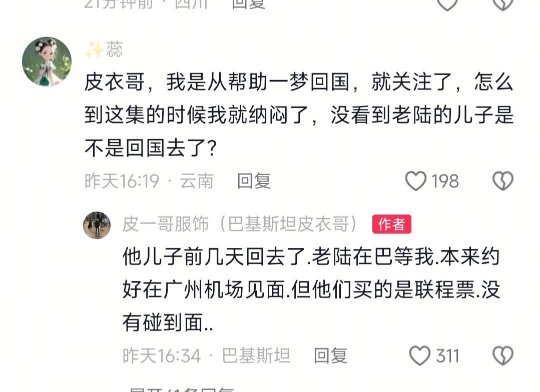 我预料到了皮衣哥可能会帮老陆 也预料到了办签证可能是非常麻烦的事 万万没想到老陆要给儿媳1万卢比,皮衣哥竟然阻止,只说给5000就可以了。 刷到皮衣哥在巴基斯坦帮老陆办签证的视频,我和朋友都惊呆了!哎呀妈呀,本来以为无偿帮忙就是纯积德,大家常说的“种善因得善果”嘛,结果还有这么多门道,我当时直接懵了——好心帮人办事,咋还得附带“禁止做自媒体”的条件?不骗你,这波操作真是第一次见,咱慢慢唠~ 老实讲,看视频里皮衣哥和老陆当面沟通的片段,那氛围说不上紧张,但就是有点怪。皮衣哥直截了当说,帮老陆儿媳办所有来中国的手续,一分钱不收,然后突然话锋一转:“你回国后不能做自媒体”。我晕!我当时心里就嘀咕:不是吧?帮人还得管人以后干啥营生?然后皮衣哥才解释,之前有过先例,他帮别人办完事儿,对方走红后自己开了号,结果网友反倒说他蹭流量,那阵子他郁闷得不行,真是跳进黄河都洗不清。 本来以为,老陆会不会不乐意啊?毕竟谁还没个选择权呢?但没想到老陆当场就答应了,还说自己回去还要上班,根本没空搞自媒体。皮衣哥又补了一句:“要是你不想出镜,咱也能帮你办”,老陆直接说“不怕拍”。然后皮衣哥就提了签协议的事儿,说一是证明帮忙无偿,全靠粉丝支持,二是明确老陆就一个目标——把儿媳带回国。说实话,我当时就想,这协议签得,算不算把“因果”都摆到台面上了?有人说的“先明后不争”,大概就是这意思吧~ 周二皮衣哥、萨拉曼和老陆见老陆儿媳那回,视频里真是状况百出!本来挺顺利的,老陆给儿媳介绍两人:“这俩是来帮咱搞掂签证的”,儿媳也挺客气。然后四人开车去办签证,结果办事人员说要先在电脑上提交申请和文件图片,这一下就卡住了,只能打道回府,看着都有点郁闷。 返程的时候,老陆儿媳突然说头晕呕吐,说坐轿车受不了,想自己坐三轮车回去。然后她摸了摸口袋,说没带钱,向老陆要。老陆也是实在,直接就想给1万卢比,哎呀妈呀,视频里皮衣哥赶紧拦住:“5000就够了,不能惯着”,还让老陆背着儿媳掏钱。我当时就想,这操作是不是有点多管闲事?结果老陆还真听了,把5000卢比递过去,还叮嘱“省着点花”。后来皮衣哥请老陆吃中国菜,老陆吃得那叫一个巴适,还念叨“多亏杨总费心”。说真的,后来才明白,皮衣哥是怕老陆儿媳刚接触就养成大手大脚的习惯,毕竟在巴基斯坦,5000卢比坐三轮车已经很够用了,这波真的给力! 说实话,视频里皮衣哥跟老陆吐槽,在巴基斯坦办事是真难,萨拉曼也补充,视频里拍的只是冰山一角,背后跑的腿、费的劲多了去了。皮衣哥还说,签证能不能办下来真不好说,可能是吧,但不管咋样,都会照顾好老陆。老陆也挺明白,一个劲儿说谢谢。我突然想起之前听人说的“帮人要帮到底,但不能没底线”,皮衣哥这波,大概就是这个意思? 视频里还提到,皮衣哥之前帮一个老乡办手续,全程无偿,结果对方火了之后自己开号,网友反倒说皮衣哥蹭流量,搞得他崩溃了好久。说实话,换谁都得寒心吧?所以这次他提前把话说透,反而显得实在。总之,帮人这事儿,真不是光有好心就行。 总之,不管是帮人还是求人,我觉得最好都把话说在前头。比如无偿帮忙,就明确说清楚,有啥约定也别不好意思提,免得后面扯皮,大家都闹心。像皮衣哥这样,虽然签协议看着有点“佛系”,但其实是避免了后续的麻烦,多靠谱啊!还有,帮人也要注意边界,别像个管家似的啥都管,但也别啥都不说,把握好度最重要,你说是吧!网红皮衣哥 皮衣哥