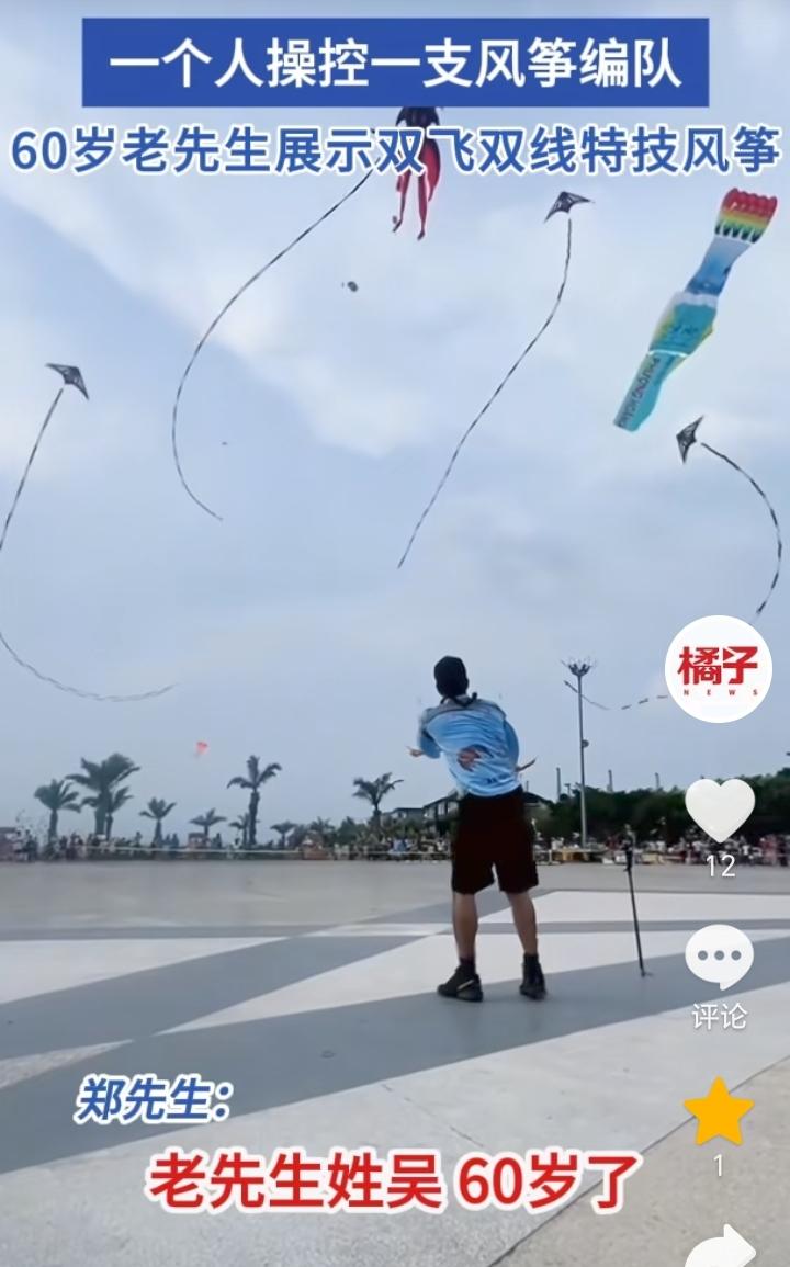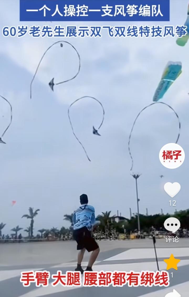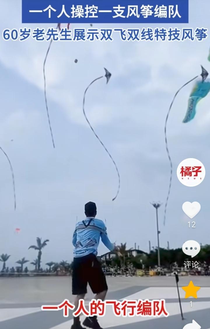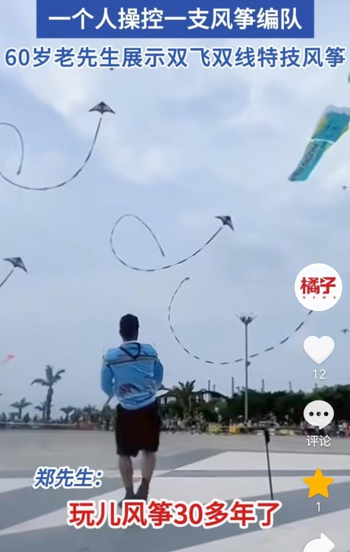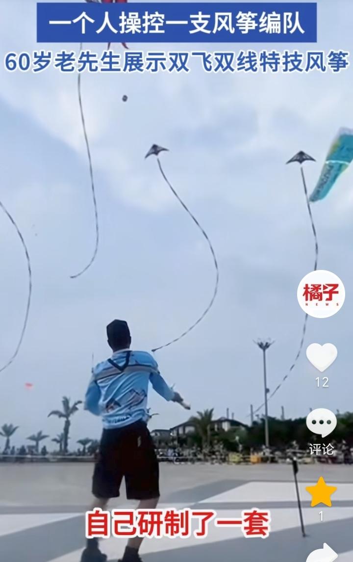 有成就感!广东珠海,一男子放风筝,开始看着像是在放一个风筝,突然一变四还往不同方向飞各种旋转,看着相当震撼。拍摄者称,老先生已经60岁了,玩风筝已经30多年了,他自己研制了一套一个人的飞行编队,手臂,大腿,腰部都有绑线,他一个人把四个人的活都干了。 看着都特别的有成就感,玩了30多年自己研制出了一套一个人的飞行编队,一个人干四个人的活,确实是一个人才,不得不让人佩服。 大爷这种玩法不仅活动了身体增强了体质,而且还锻炼了身体的协调能力,可以说是一举多得。 人的潜力是无限的,不管什么事都是从入门到熟练再到精通,最后就是创新,不过前提是要敢想敢做。 遇事要善于钻研,不能墨守成规,因为只有钻研创新才会有进步。