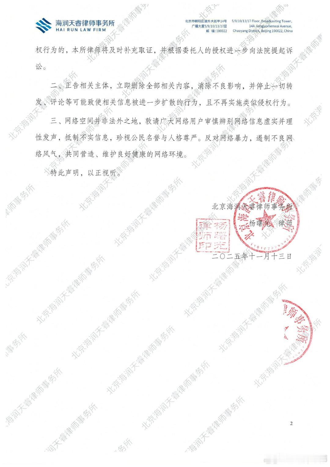 李一桐方严正声明!李一桐委托律师就近期部分网络用户侵害其名誉权等合法权益之相关法律事宜,及维权案件进展情况,发表严正声明。