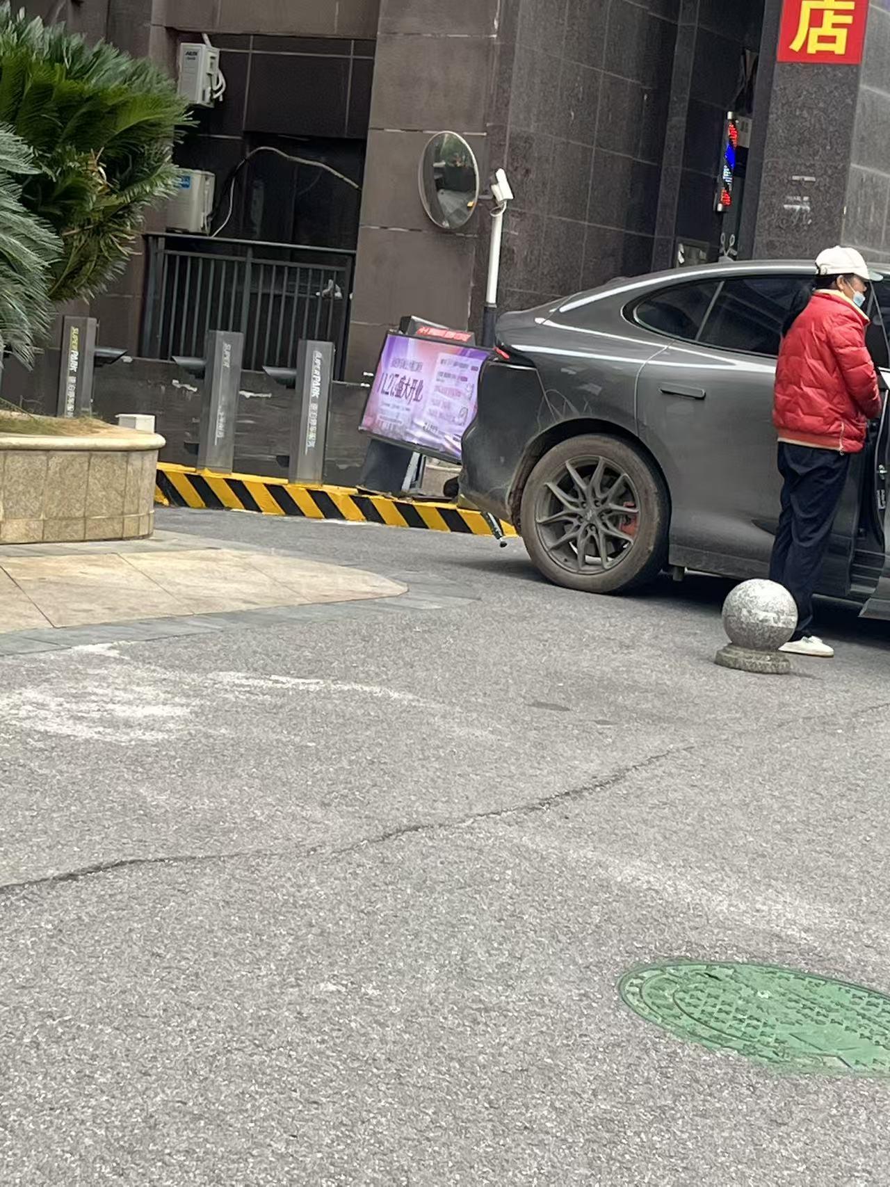 从地库开出来直接把栅栏撞开了 这司机开太猛了,这个栅栏抬起动作慢,他起步太快没收住。 那种一根的抬杠都要2000元,这个栅栏我预计会需要5000元左右报价,加上车身的损伤,电车的维修费挺高的,估计一起要近万元啦。
