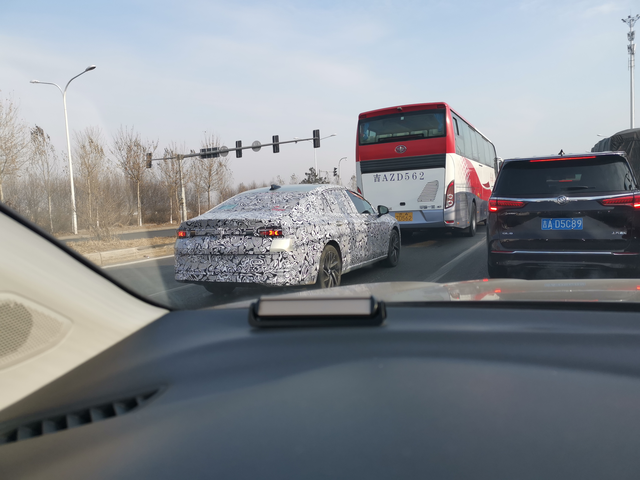 偶遇b9迈腾 比b8高出来不少,高度接近suv了,内饰类似新款速腾,一个大屏,日行灯两个小条