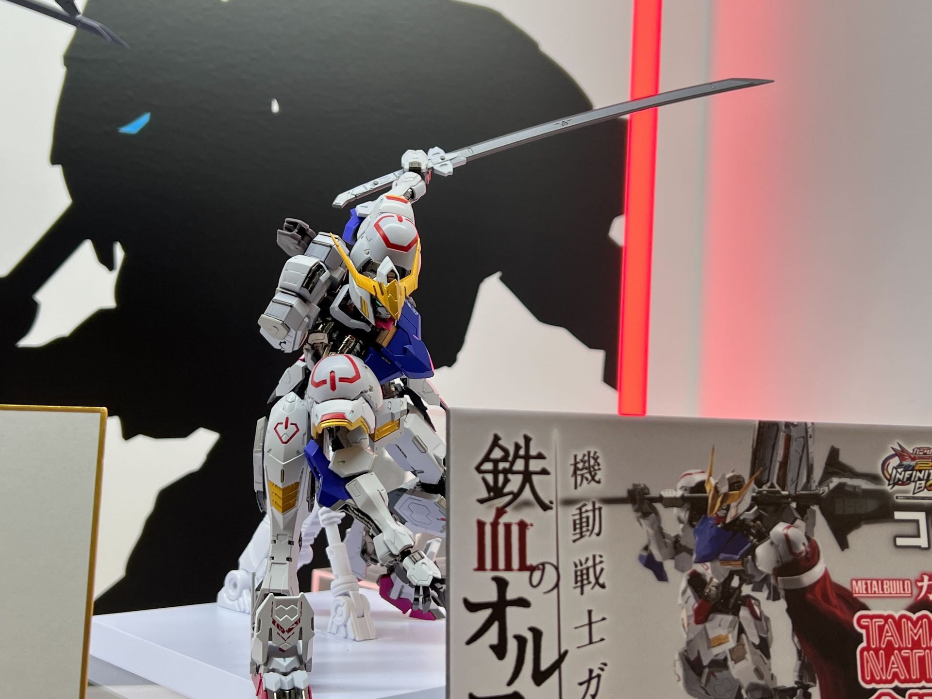 METAL BUILD高达巴巴托斯(暂定名)实物展示:11月下旬详细公开、12月上旬开预订 ①名称后面加了“(仮)”,估计是要加上“厄祭战时式样”了②披风上没有家徽,不知道是真的就没有了,还是刀正式情报公开时候再加上去