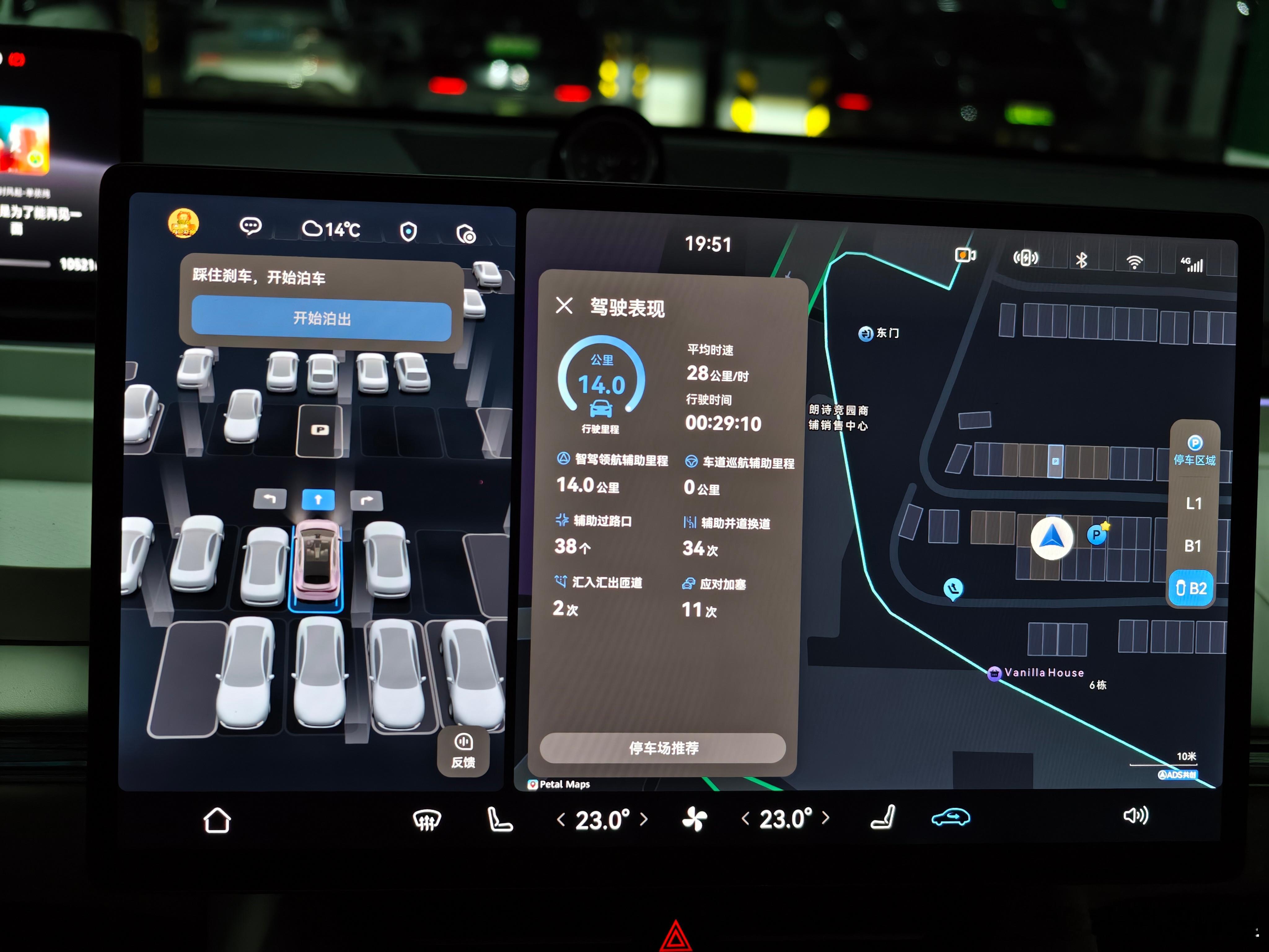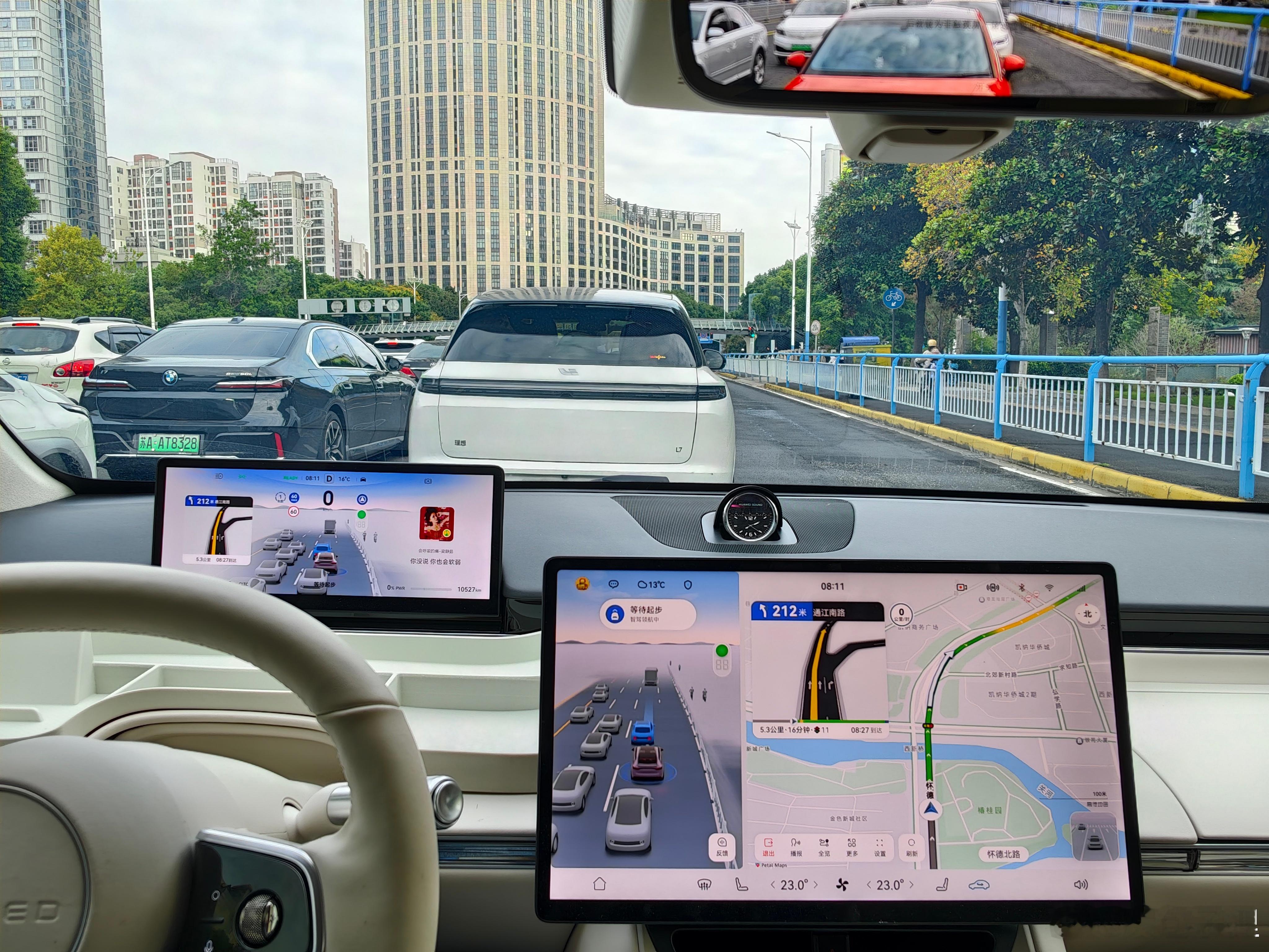 来聊聊ADS4.0.2吧,这个版本是华为迭代4.0以后第一个版本,实话实说我体验到了比较明显的回退:1.行人和非机动车的权重大大增加,会因为较远(3米左右)的行人造成自车的减速甚至停车。导致在行车的过程中流畅感削弱比较明显,尤其是侧后方向的外卖机动车向前穿梭的时候,容易让司机发生不明的减速。2.变道博弈能力有回退,在3.3.2版本里表现提升的变道博弈能力有所回退,具体表现为不太会在动态行车过程中压住道线去反复尝试挤入车头,而是会发生停在道线上静态等目标车道的安全冗余距离出现,导致汇入汇出效率有所降低。但必须要说的是,尽管ADS出现了部分体验上的回退,但其主打的安心感和稳定性表现依然在线,这种感觉就是让你不会有紧张和极少的风险接管,也偶发压线闯红灯开错路这样的高危场景,主要是在效率上可能有的场景下比较弱一些。当然,作为一个大版本迭代,ADS4在很多方面是有明显的提升的:1.车库和非公开道路的能力大大提升,对于比较复杂的地库入口和各种闸机,以及车库内较为畸形的转弯,都能更好的应对和行驶,需要进入到脱困模式的场景越来越少。2.会车场景优化,尤其是在低速情况下的会车,那种先减速试探,然后稳速通过,最后加速离开的拟人化表现明显,效率和安心兼得。3.SR界面优化非常明显,各种识别的目标物体更多,SR画面也更加精美,可以时刻显示此条路的路名,路口的鸟瞰模式角度调用和范围显示更加合理。对于地库显示更加完善,部分地库可以显示车位号,发起导航的时候就可以直接导航去需要的目的地具体车位。4.人机交互优化,辅助驾驶语音提示更加到位,比如增加“退出领航后会进入人驾”。当驾驶员干预方向盘以后,车机会自动询问干预的原因,方便归集问题类型。人驾时候补盲影响会对风险场景染红并提示警告音,给到很不错的提示。但辅助驾驶情况下,就无法开启补盲影像,这个就很可惜了。5.我的智界R7上有了停车场自动识别二维码到车机的功能,这个真的太方便了,不仅仅是出场的时候可以扫码,实际上你一进入车内就可以看到相关二维码信息,率先支付。这个功能的好用,是谁用谁知道。在进入新一代辅助驾驶的过程中,目前华为、小鹏、理想的量产版本都出现了多少不一的回退,这其实反过来看也是一种领先的表现,毕竟其他品牌可能还没有到进入新一代的时候。