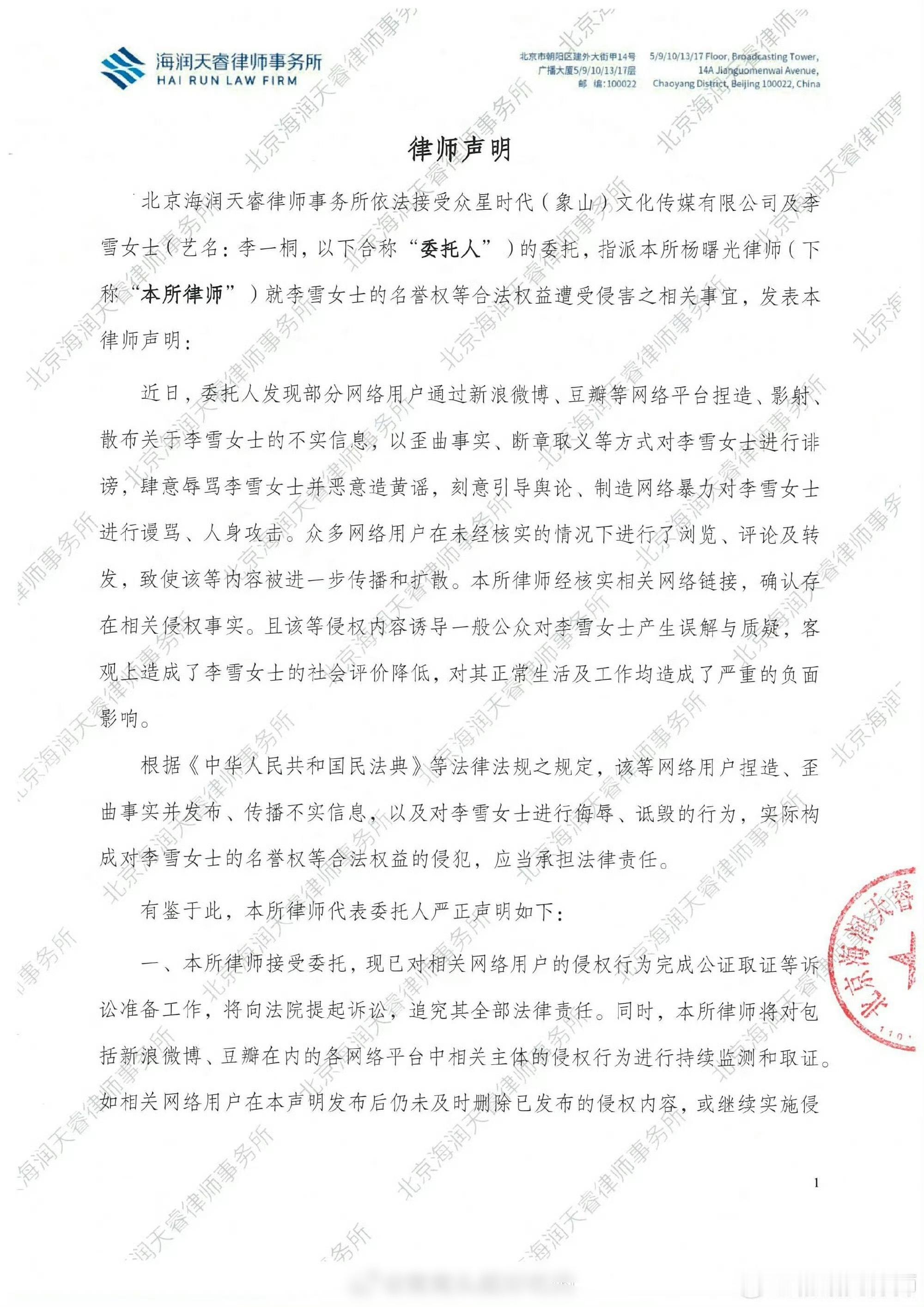 李一桐工作室告黑了,不用说都知道告的是谁家,太惨了真的,拍个剧跟渡劫一样,所以女明星千万千万不能合作这个男明星。ps:李一桐工作室的告黑有律所的公章噢,告嘿有没有律所公章区别很大的