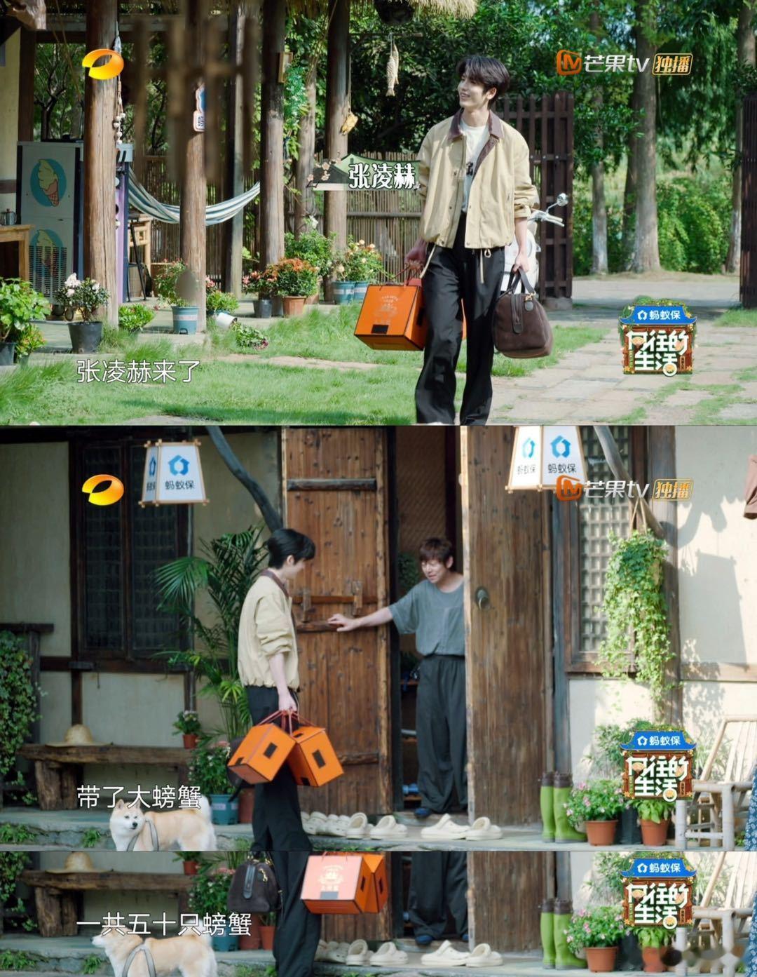 谁羡慕了我不说!第一次带鲜花饼显贴心,这次50只螃蟹够全员饱餐,张凌赫的做客诚意看得见摸得着~