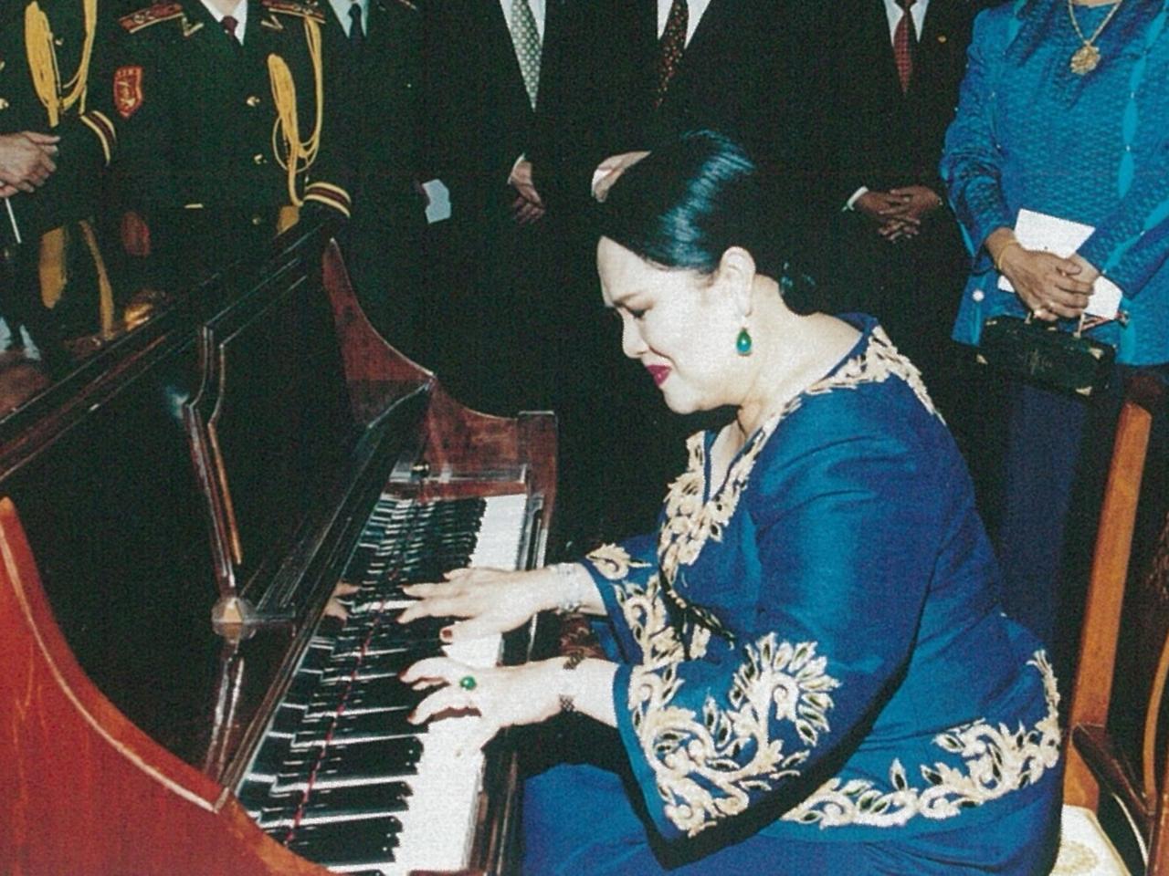 25年前诗丽吉访华,在晚宴上优雅地弹钢琴 诗丽吉王后陛下,与诗琳通公主殿下,一同到访钓鱼台宾馆,出席中方晚宴。王后身着Yutthaphong Meeprom设计的,绣有甲虫翅膀的丝绸连衣裙,搭配饰丝绸流苏的绉丝腰带。席间,她亲自弹奏钢琴,技惊四座,赢得满堂喝彩。