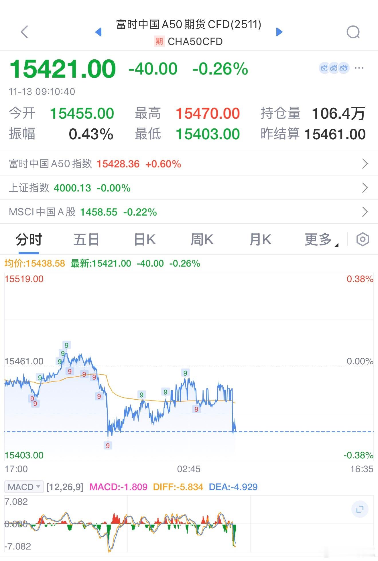 A50开盘下跌