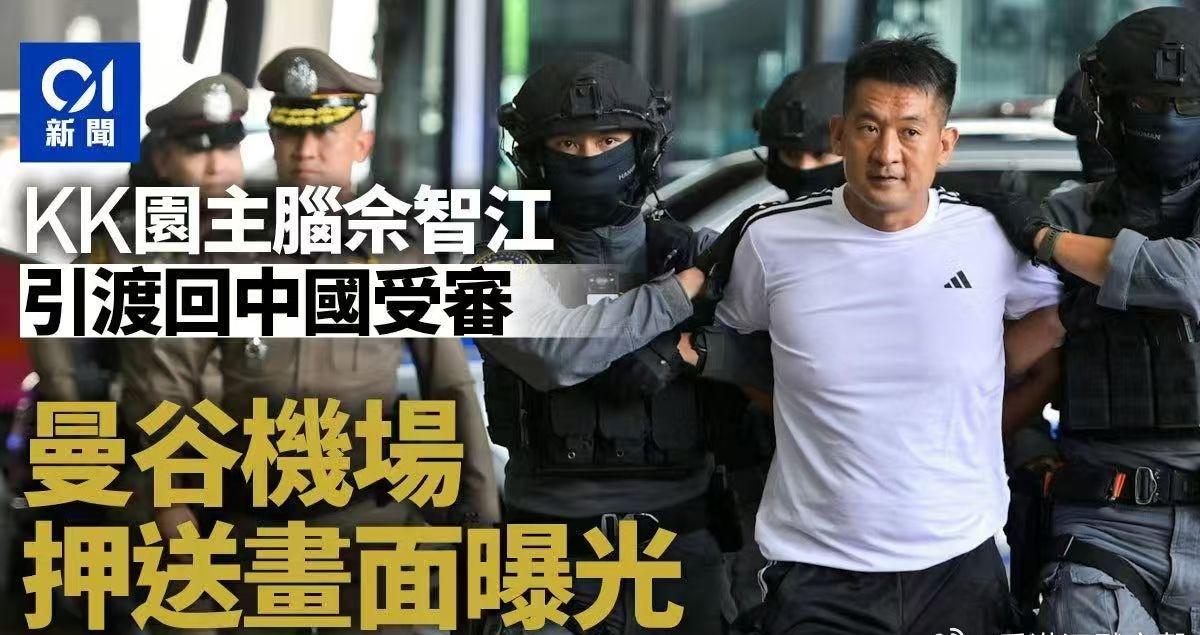 11月12日当地时间12时45分,泰国警方将邵东人佘智江押送至曼谷素万那普机场,