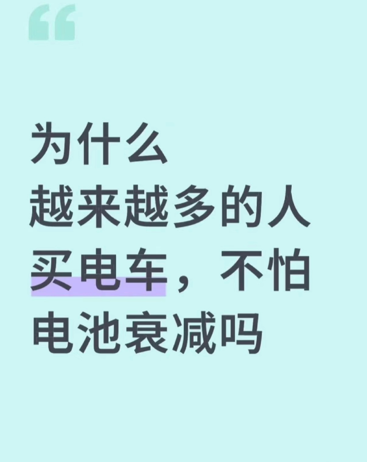 一个理性的权衡我们可以把购车决策看作一个天平:· 天平一端(电车的风险): 电池衰减风险、充电便利性(尤其在长途和没有家充桩的情况下)、潜在的保险费用稍高。· 天平另一端(电车的收益): 极低的日常使用成本、优异的驾驶体验、政策红利、科技感、环保价值。对于绝大多数在城市通勤、有固定车位安装充电桩的用户来说,电车的日常收益是即时且巨大的,而电池衰减风险则被技术进步和长质保政策有效对冲了。所以,不是人们“不怕”电池衰减,而是他们经过计算和体验后发现:“享受8年低成本、高性能的驾驶,哪怕8年后电池真的不行了,省下的油费和保养费也差不多够换新电池了,更何况这8年里我开得还很爽。”这种“算得过来的经济账”和“实实在在的体验提升”,才是电动车销量暴增的根本原因。随着技术继续进步和基础设施进一步完善,人们对电池衰减的顾虑还会进一步降低。