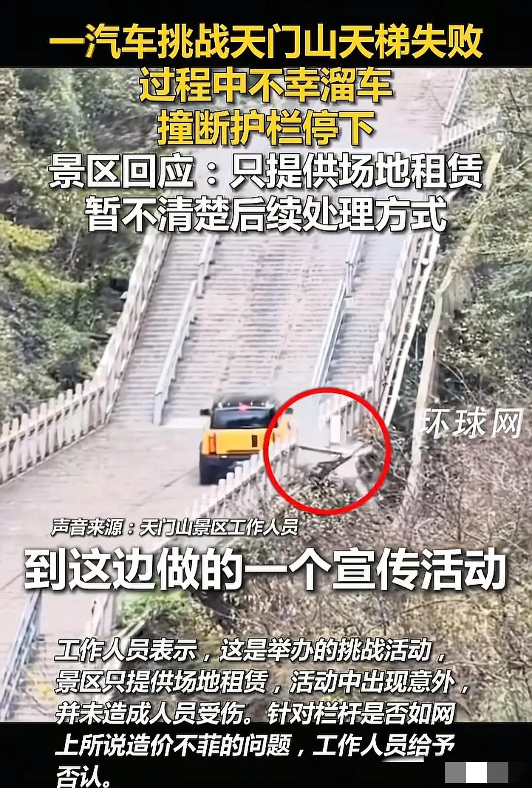 让人惊掉下巴!奇瑞天门山挑战溜车撞护栏,百万宣传费打水漂,道歉声明连夜冲上热搜! 网友瞬间炸开了锅:奇瑞硬刚路虎同款极限赛道,公共景区变测试场,是自信过头还是瞎折腾?安全细节都没拿捏住,这样的“硬核营销”到底值不值呢?我们一起来看! 综合极目新闻等媒体报道,11月12号中午,奇瑞一款汽车在天门山天梯挑战时,因为安全防护绳卸扣脱落,车辆下滑撞到护栏。为了配合这次活动,景区暂时关闭了天梯,游客需要改乘穿山电梯。 13号凌晨,奇瑞发布致歉声明,承认风险预估和细节把控不到位,承诺全额赔偿损失并修复护栏。客观来说,奇瑞想通过极限场景证明车辆性能,这个思路能理解。 毕竟天门山天梯以陡峭、湿滑著称,之前只有路虎成功挑战过,能在这里完成测试,确实能给产品加分。而且从9月就开始预热,看得出来车企在前期做了不少准备。 但是呢,问题也很明显:天梯本是供游客徒步的景观,并非专业测试场地,45°-60°的陡坡、30厘米宽的湿滑台阶,本身就存在很多不可控因素。因此,网友们分成两派,纷纷发表不同的看法。 有人觉得“没必要”:“人走的路非要开车上,专业测试该去测试场,占用公共景区还影响游客游览,有点得不偿失”;不过,也有人理解车企的初衷:“想证明硬实力没毛病,但安全和合规得放在第一位,细节没做好反而砸了口碑”;还有人提到景区责任:“景区把景观租给车企搞高风险活动,也得考虑建筑承重和安全隐患”。 其实,这次事件的关键,不在于“要不要做极限营销”,而在于“选什么场景、怎么把控风险”。车企想塑造“硬核人设”无可厚非,但公共景区涉及游客体验、设施安全和生态保护,用来做高风险测试,本身就容易引发争议。 但这次意外也说明,营销再热闹,不如把安全和细节做到位。景区方面也该反思,商业合作不能只看收益,还要把安全风险评估做足,避免给游客和自身带来麻烦。 总的来说,这场没成功的挑战,对奇瑞来说未必全是坏事,至少给其他车企敲响警钟,再做极限宣传,安全风险和游客体验才是底线!