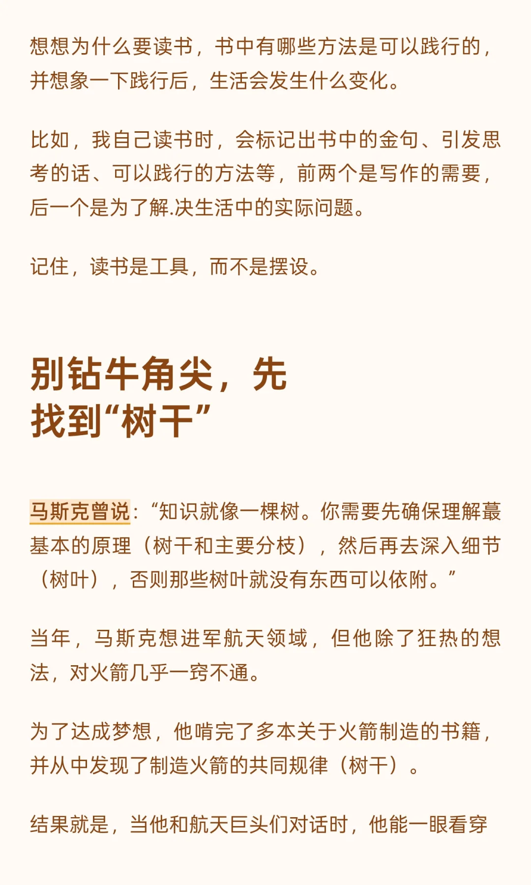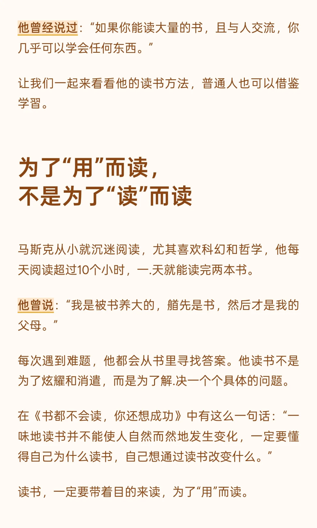 马斯克通过高效阅读方法,将书籍转化为实际能力。