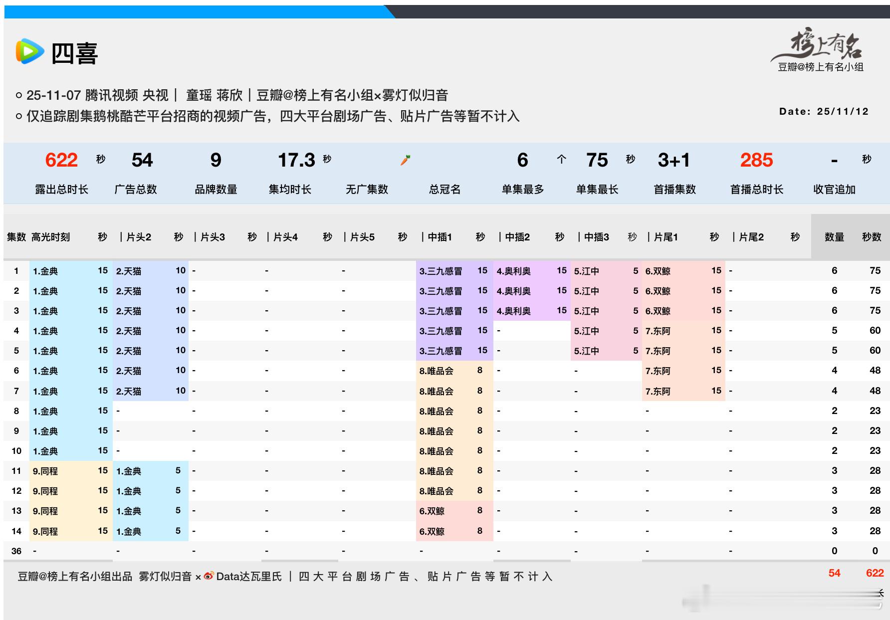 童瑶、蒋欣 腾讯热度破26000,进入腾讯爱看俱乐部,峰值26256以前腾讯热度26000,播放量区间是2500-2800万,之前有的剧2300万我都觉得氵。今年有的剧竟然1600多万就26000了……四喜看着也是1900-2000万播放量的样子~招商最新单集3广28s9品牌,总时长622s央八收视率倒是一直挺不错,酷云收视维持在2.7%上下,央八年5