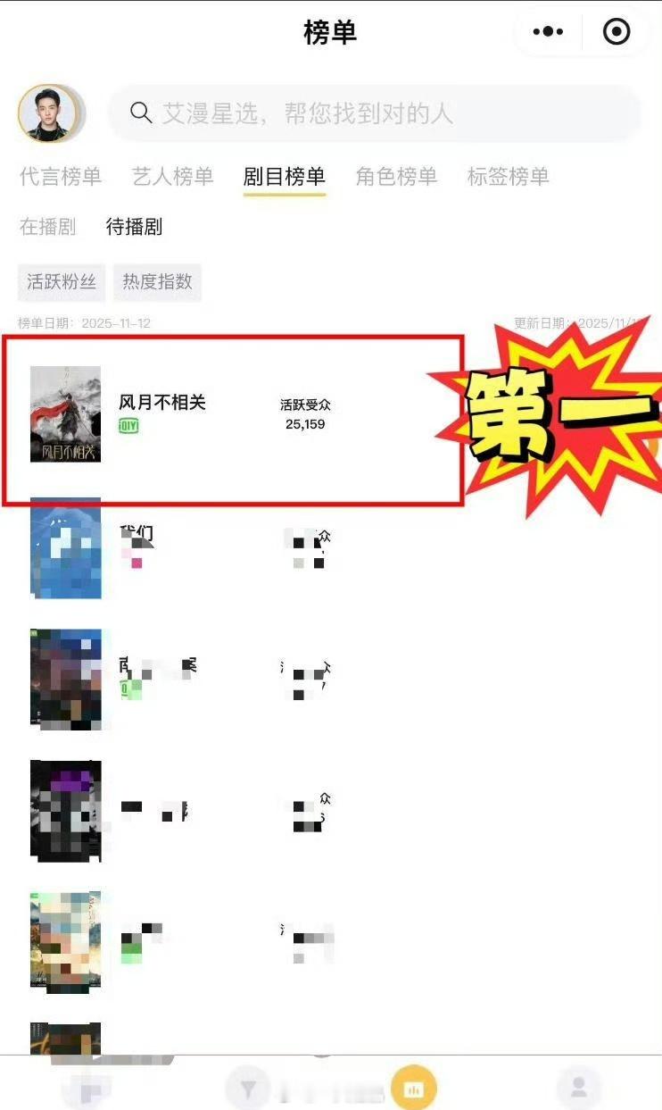 邓为《风月不相关》拿下艾漫热度指数、活跃受众、角色榜三榜第一,殷戈止角色贡献比1
