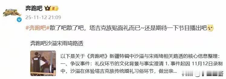 11月13日,47岁的沙溢,冲上热搜,这一次,不是因为老婆胡可,而是在综艺里的一个举动,瞬间引发网友热议。 “公开亲吻别的女明星,太没有边界感了吧。[捂脸]” 胡可,天塌了。 原来,有网友爆料,在《跑男》最新的路透中,47岁的沙溢,对着26岁的宋雨琦,托脸亲吻,连亲好几口,一点都没有边界感,就算是节目效果,也太让人难以接受了吧。 这一举动,瞬间冲上热搜,不少网友直呼:胡可、天塌了。[泣不成声] 据悉,胡可比沙溢大3岁,两人有2儿子,自从结婚后,胡可就淡出演艺圈,专心在家带孩子,把一家3口养的白白胖胖。 对于沙溢的举动,《跑男》节目组出来回应,说是“塔吉克贴面礼”,在当地传统中,长辈吻晚辈额头适用于同性别或儿童场合,成年异性标准礼仪应为女性吻男性手心、男性轻抚女性头部,沙溢这是把宋雨琦当孩子了? 网友:还不如亲范丞丞[捂脸] 不管怎样,作为已婚男性,还是有点边界感,和女艺人保持距离,你们觉得呢?[泣不成声]