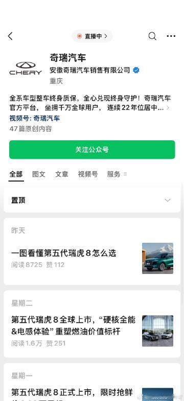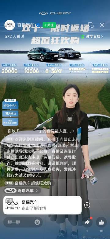 看了下奇瑞的各大平台账号,除了在微博找到一张奇瑞汽车销售有限公司盖章的致歉声明,似乎并没有找到有其他的致歉内容啊 直播间好像没受太大影响,主播还在正常卖车【来自懂车帝车友圈】