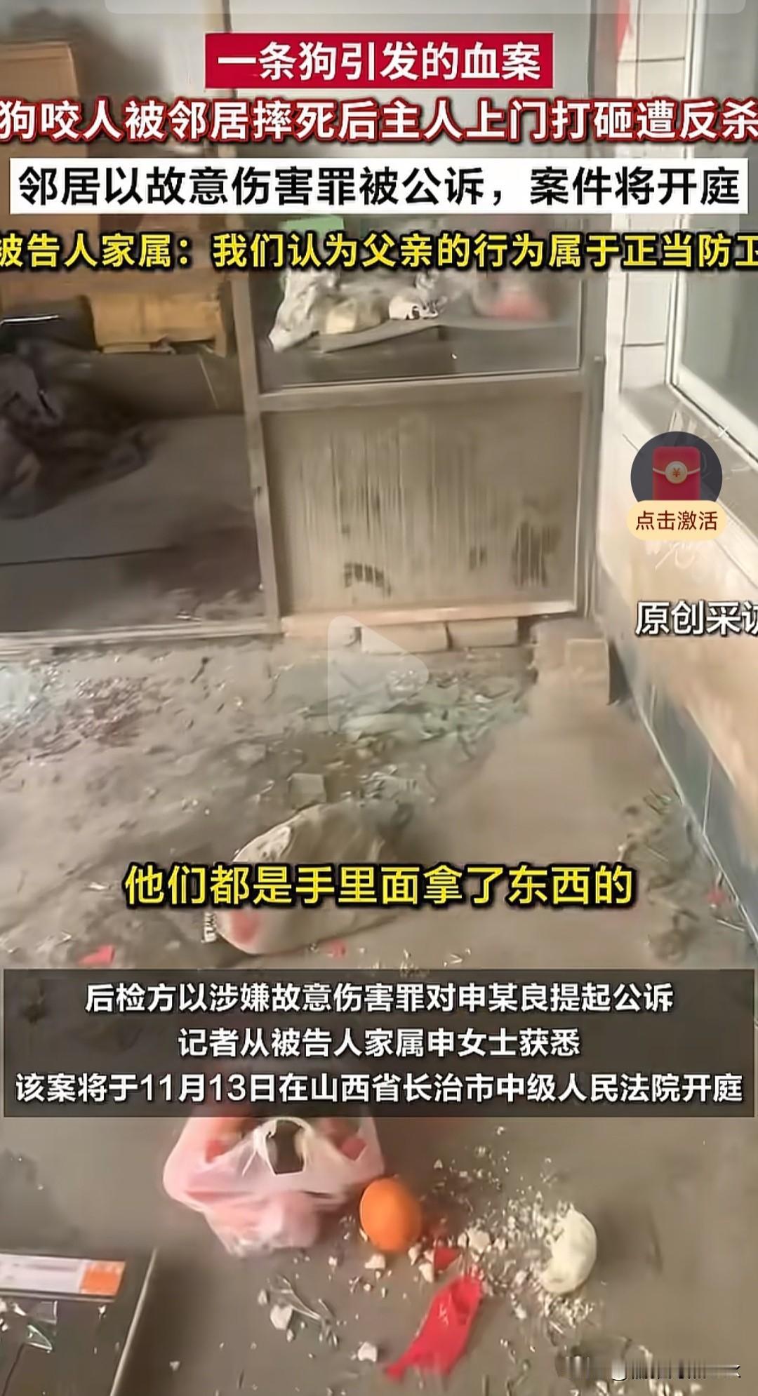 山西狗咬人引起的血案,一家人的行为真奇葩,9人上门打砸,庭审却未来一人,当初有多狂,现在就有多后悔,正是应了那句老话,妻贤夫祸少。 狗咬人被摔死,申家主动找郭家的姐姐求和协调,狗主人家狂妄不接受,还质问,你为什么要往狗身边走? 申家主动报警,让警方公平公正处理,死者妻子不配合。 其后,死者妻子带领妹夫外甥等持铁锹,锄头,棍子破门而入申家进行打砸。别家女人是怕将事扩大,连累到亲戚,她倒好拉上亲戚垫背,蠢!亲戚也是个搅屎棍。 估计,事发后亲戚都感到后怕,这种事去掺合,有个好歹,亲戚都成仇人了。 后面两个女儿及死者也加入了,阵势这么大,就没想到后果? 舆论一边倒的支持申家正当防卫,否则人在自己家,还哪来的安全感。 面对舆论,死者妹妹还洗白觉得自己冤,说他们只是上门砸了玻璃,没打人,他们家一死三伤,对方不仅不道歉,还引导舆论谴责他家。 她是丝毫不提是9人持械非法入侵,没打人,申家父亲身上的淤青,鼻骨骨折从何而来。 事实是,整个过程对方一直在攻击,申家父亲蹲着往后退,逼到角落后悲剧发生。 今天庭审,狗主人家没人参加,也许是实在不占理,辩解也显得苍白无力,反而会掀起更大的舆论吧。 当时起哄的亲戚,如今估计也如鸟兽散,都是看热闹不嫌事大的,自己不熄端,又有谁是真心为其考虑的? 你信不?那9个人事发后估计在互相埋怨,你为什么不拉?你为什么要怂恿? 家有贤妻夫祸少!死者妻子终于为自己的糊途付出了代价。被告律师认为是正当防卫。支持正当防卫,也给那些狂妄之徒提了个醒。
