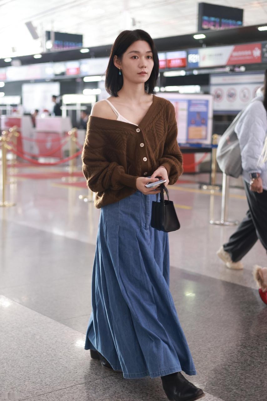 今天段奥娟现身厦门机场,她这次搭配的很有潇洒时尚魅力,看起来也格外的年轻。 段奥娟里面穿白色背心,外面套装咖啡色的毛线装,下身搭配蓝色的牛仔裙,尽显洒脱之美。 她的身段是极为苗条的,这次穿的很宽松,不过超有复古文艺气息。 段奥娟脚踩黑色的皮鞋,有种酷酷的感觉,走路还很有气势。 她留着齐肩长发,整个人彰显出了满满的淑女风情。 段奥娟这回特意拉高了腰线,还凸显出完美的身材比例,越变越迷人了。