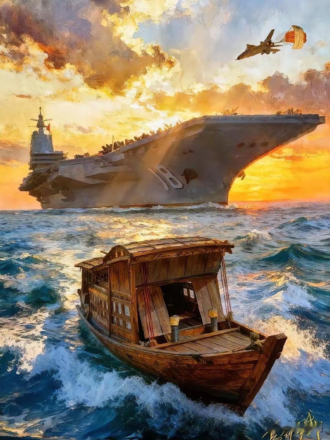 看得我热泪盈眶! 乌合麒麟用画笔弥补了当初的遗憾,他们在这时空中的联动了,福建舰接81192返航了! 乌合麒麟这幅《沧海承潮》,记录着我们华夏,从一叶孤舟到如今的首艘常规动力电磁弹射航母,从弱小到强大,如今我们的大国重器-福建舰,甲板已清空,它来接81192返航了!王伟战士终于迎来了迟到的归航,他看着这航母应该是很骄傲自豪的! 这幅画记录的不只是华夏的来时路,更是对先辈们最好的告慰:这盛世,如您所愿,我们从未忘记。