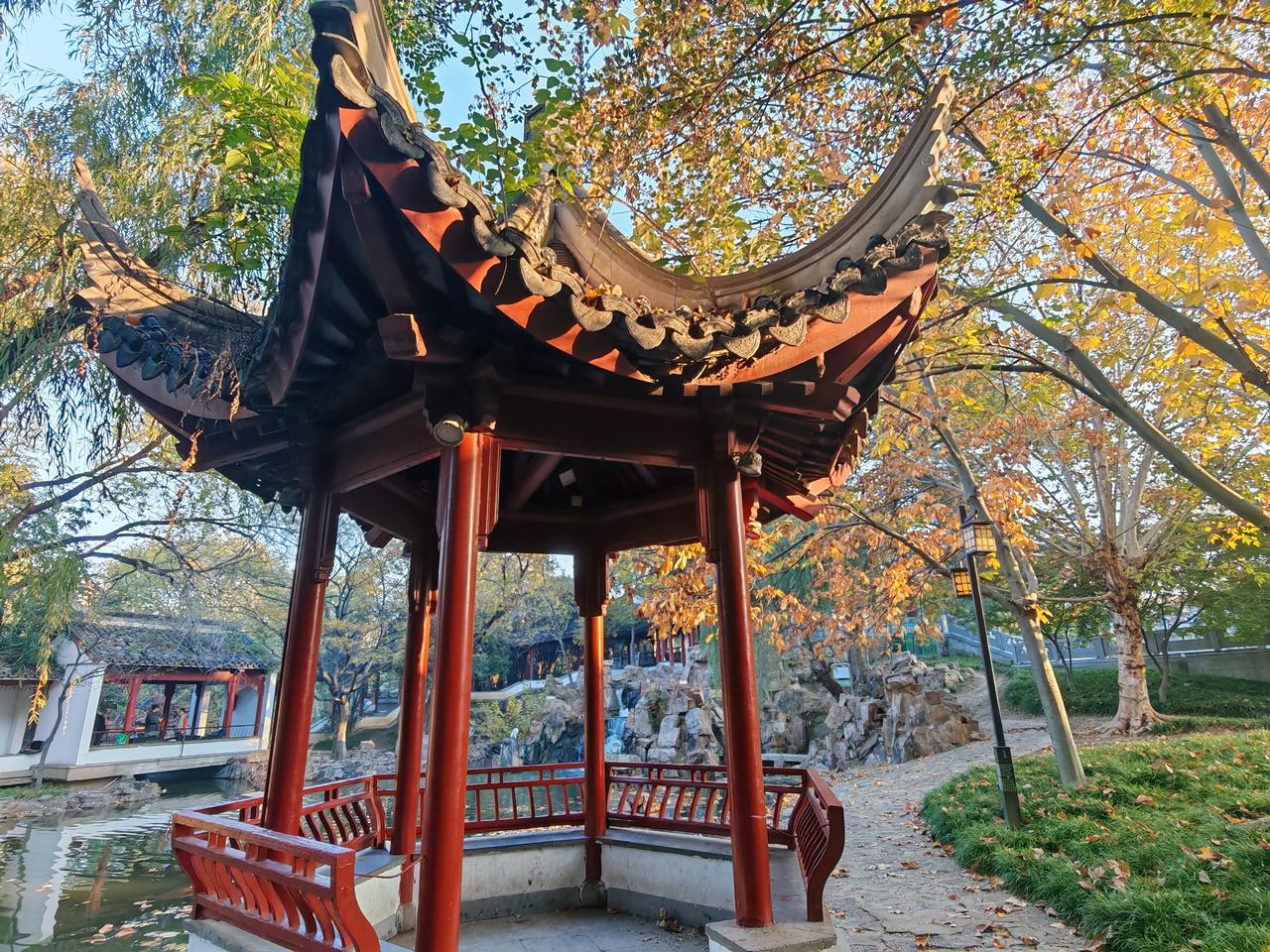 立冬后景色确实美得很!就像立冬后的植物园,完全就是一幅斑斓画卷。金黄耀眼,红艳似