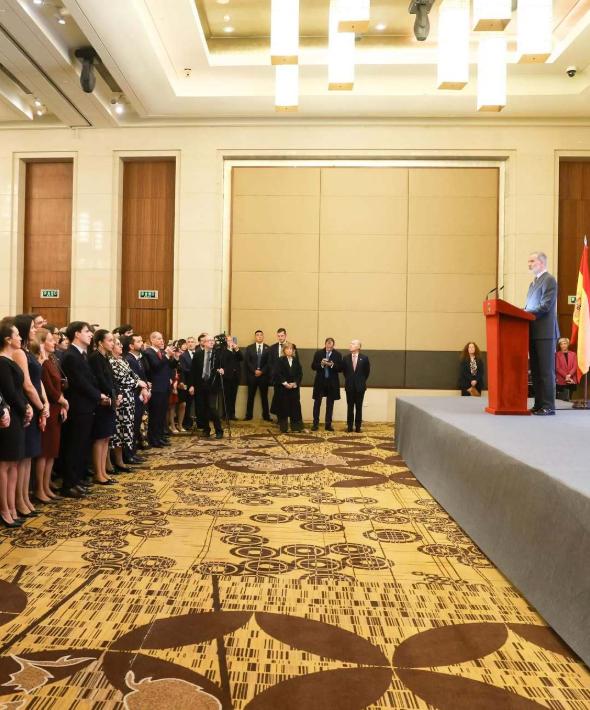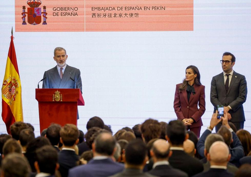 西班牙国王与王后压轴行程,出席西班牙侨民招待会!11月13日费利佩国王和莱蒂齐亚王后在北京出席最后一个活动,在北京丽晶酒店为北京的西班牙人民举办招待会,这个活动结束后就启程去北京机场了。 国王夫妇在北京见到了西班牙人,见面后非常的亲切,费利佩六世还上台致辞,莱蒂齐亚王后站在旁边陪伴,看来在异国他乡见到家乡的人,真的是一件很开心的事情。 俗话说:老乡见老乡,两眼泪汪汪!国王陛下与王后陛下见到了自己国家的老百姓,自然是开心的,这些西班牙人在异国他乡见到国王与王后也倍感亲切。