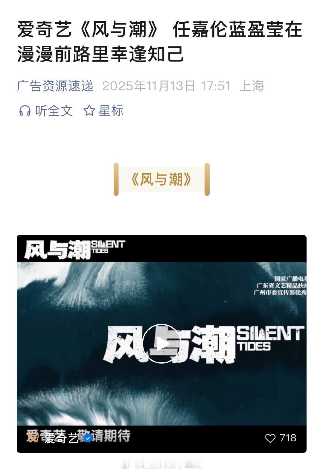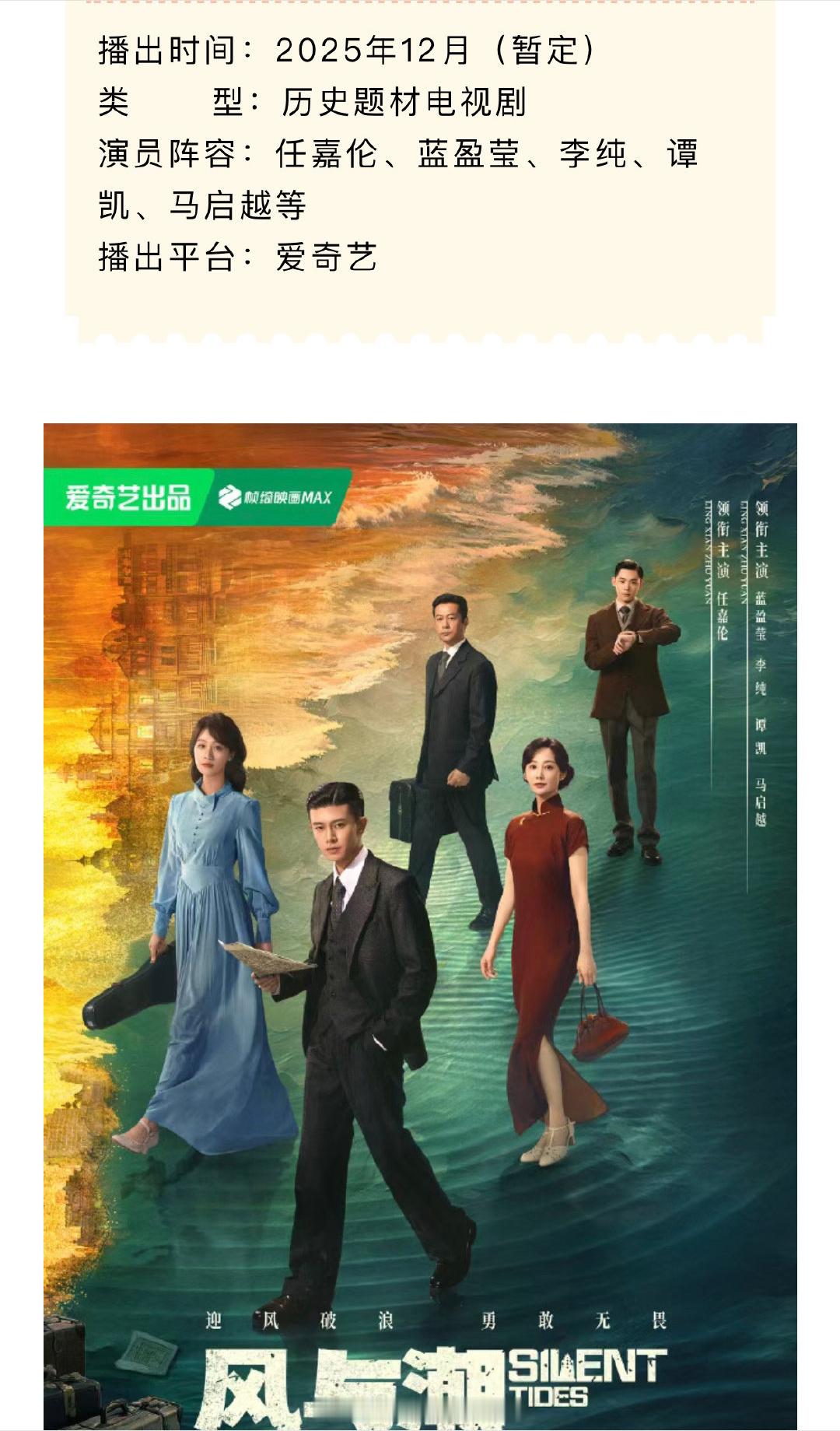 任嘉伦、蓝盈莹、李纯等主演的《风与潮》开播前招商了,暂定2025年12月播出