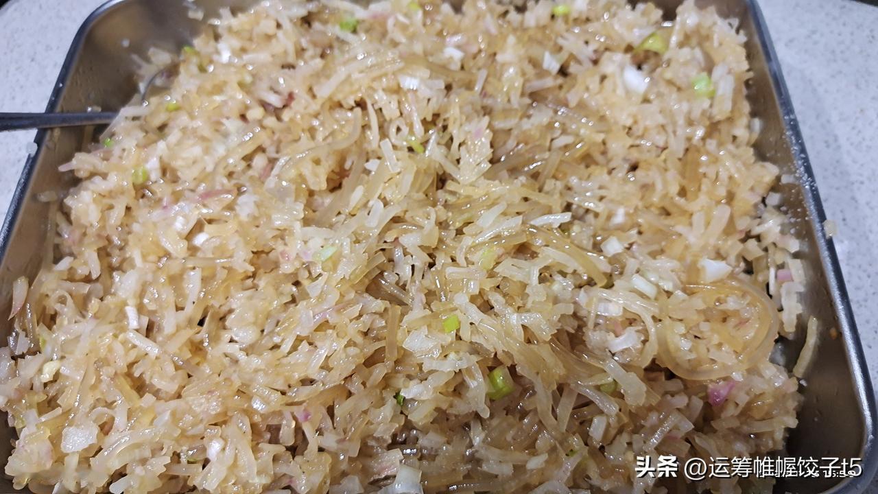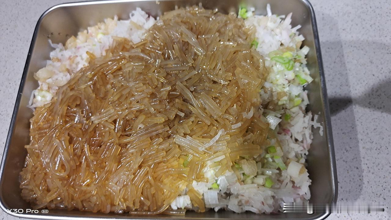 简直笑死我了,就想吃这口了,吃不到咋还感觉抓心挠肝的呢?这岁数越大馋劲儿上来咋还越不受控制了呢? 就这一口,不是啥好吃的,确实多少东北人的最爱,特别是北风烟雪的冬天,趁着刚出锅的热乎劲儿,来上一勺大蒜泥,皮薄馅大软软呼呼那叫一个香,鸡鸭鱼肉都不和你换[捂脸],如果再来一碗野菜素汤,喝完你都容易飘起来[捂脸]。 南方的小伙伴儿或许你们不太懂,也不太理解我们大东北的烫面粉条萝卜素馅大包子有多香,悄悄告诉你们,真的老毕了,老好吃了。 如果你看着有点儿馋口水了,还不太好意思说,没关系啊,现在我就教你怎么做出香喷喷好吃又解馋的东北烫面,粉条大红萝卜素馅包子。 首先是和面,面一分为二,开水各一半常温水和一半,然后均匀揉到一起,盖上保鲜膜放一边醒面。 粉条需要提前温水泡好,泡到软一点没有硬芯儿就可以,切碎后少放一点酱油和食用油拌一下备用。 大红萝卜洗净插菜板插成丝,然后开水下锅烫去萝卜本身的辣气,过冷水攥干净多余水分,切成丁,可以不用太碎,这样可以和碎粉条相呼应,口感也更好。 拌馅的时候我一般会用点猪大油,和熟豆油,十三香,葱姜,盐,酱油耗油,果蔬鲜,如果爱吃虾皮,方里点儿口味会更鲜更香,这个可以根据个人口味添加。 然后把馅调匀,尝一下味道,一切欧克了,面也醒好了,就可以开始动手包大饺子了。 这种大饺子要皮薄馅大才好吃,不用担心馅会把饺子皮撑破了,这样烫过过的面特别劲道有弹性,你大可放心去包就是了。 包含的饺子冷水上锅水开8分钟就可以,时间太长就会皮硬馅也软踏踏的不好吃了,所以这蒸的火候时间也是关键一环,要想比划比划的南方小伙伴儿们千万记住了。 我今天是说啥就想吃这口了,这次包饺子和平时完全不一样的,平时干活沙楞快的我包这点饺子都不在话下,分分钟的事儿。 今天就不一样了,带着16个月的小孙女,那家伙不单单走得快,更是手疾眼快的让你措手不及,安全起见,她不睡着我是万万不敢下手的。 好在老天爷想帮我吃上这眼吧眼盼的粉条萝卜蒸饺,三点多小家伙识趣儿地睡着了。 我这家伙地开始忙开了,先和面,烫粉条,然后洗萝卜,烫,切,拌馅儿,一切就绪开始揉面,下记子,擀皮,包饺子,上锅开蒸。 这个过程好不夸张啊,我全程都跟侦察兵似的,悄悄地进行的,生怕一不小心搞出来一点动静把我家小祖宗惊醒了,我这顿饺子前功尽弃了,时不时我还得悄悄地开开卧室的门观察观察小不点儿的事实睡况,确认依旧睡得很香,在悄悄退回来继续我的饺子工程…… 等待饺子蒸好的空档时间,扒蒜打蒜泥,又紧抢慢赶地给老高做了一碗他的最爱,婆婆丁虾皮汤,再来几小块咸萝卜,几片酱牛肉,黄飞鸿麻辣花生米,都好了正好饺子也好了,赶紧老高吃饭,老高一看今天的晚饭眼睛都亮了,这感觉东北的小伙伴儿最有发言权了,最懂了,对吧? 我也赶紧趁着小不点儿还没醒,趁热乎劲儿吃了四个,真香啊,哎妈呀,总算吃到嘴了。 真是应了大东北那句老话了“好吃不如饺子,好受不如倒着”,吃到嘴了,知足了,哈!哈!就这点出息,没辙了! 南方的小伙伴儿们,你们学会了吗?别忘了点赞收藏啊,不然万一哪天想做了,你就找不到我了哦!