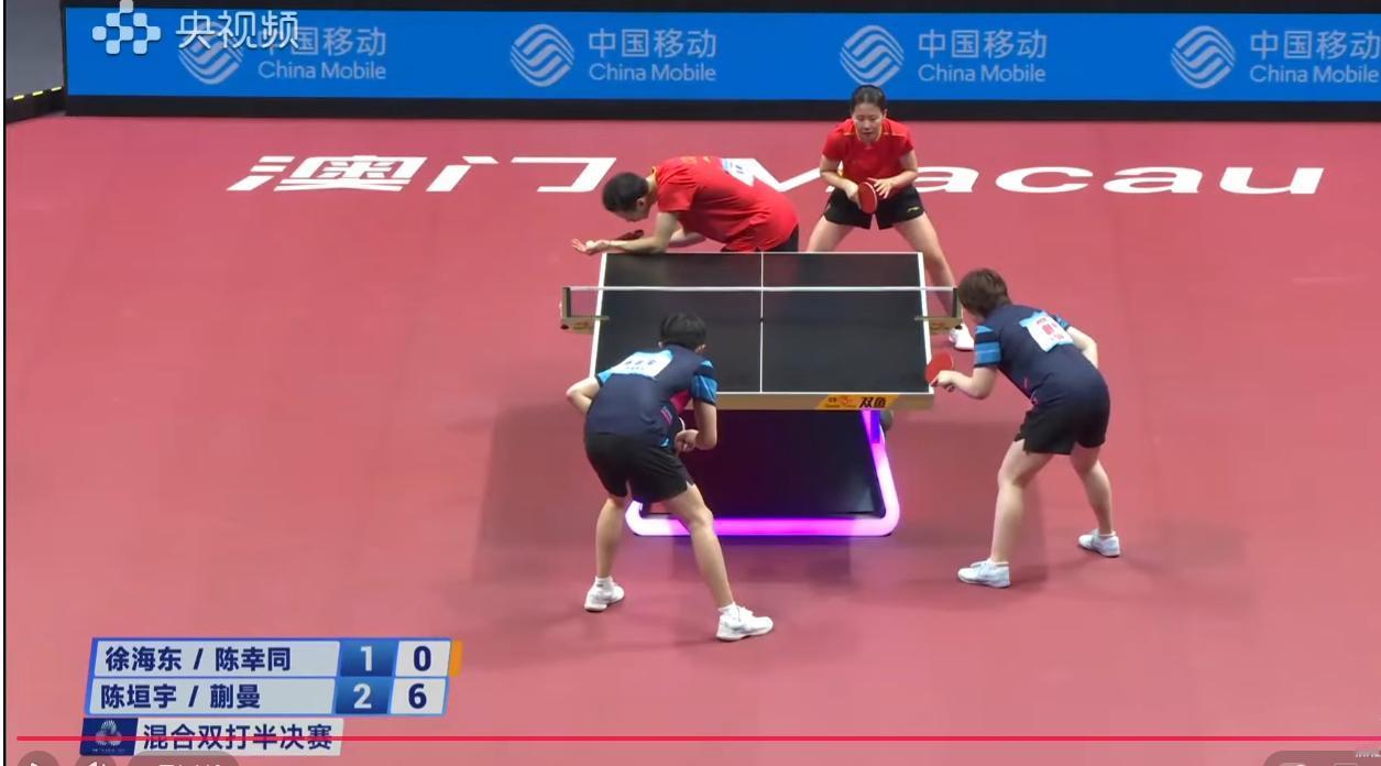 徐海东失误太多,辽宁队1:3落后,大概率输了。 江苏队的蒯曼/陈垣宇 和辽宁队的徐海东/陈幸同, 实力差距很小。 第一局:江苏队11:9拿下 第二局:辽宁队11:5扳回 第三局:江苏队11:9再下一局 第四局:辽宁队徐海东失误太多,江苏队6:0开局, 江苏队11:4拿下。 不出意外,江苏队4:1拿下, 我去看大头了, 有意外,给我留言。