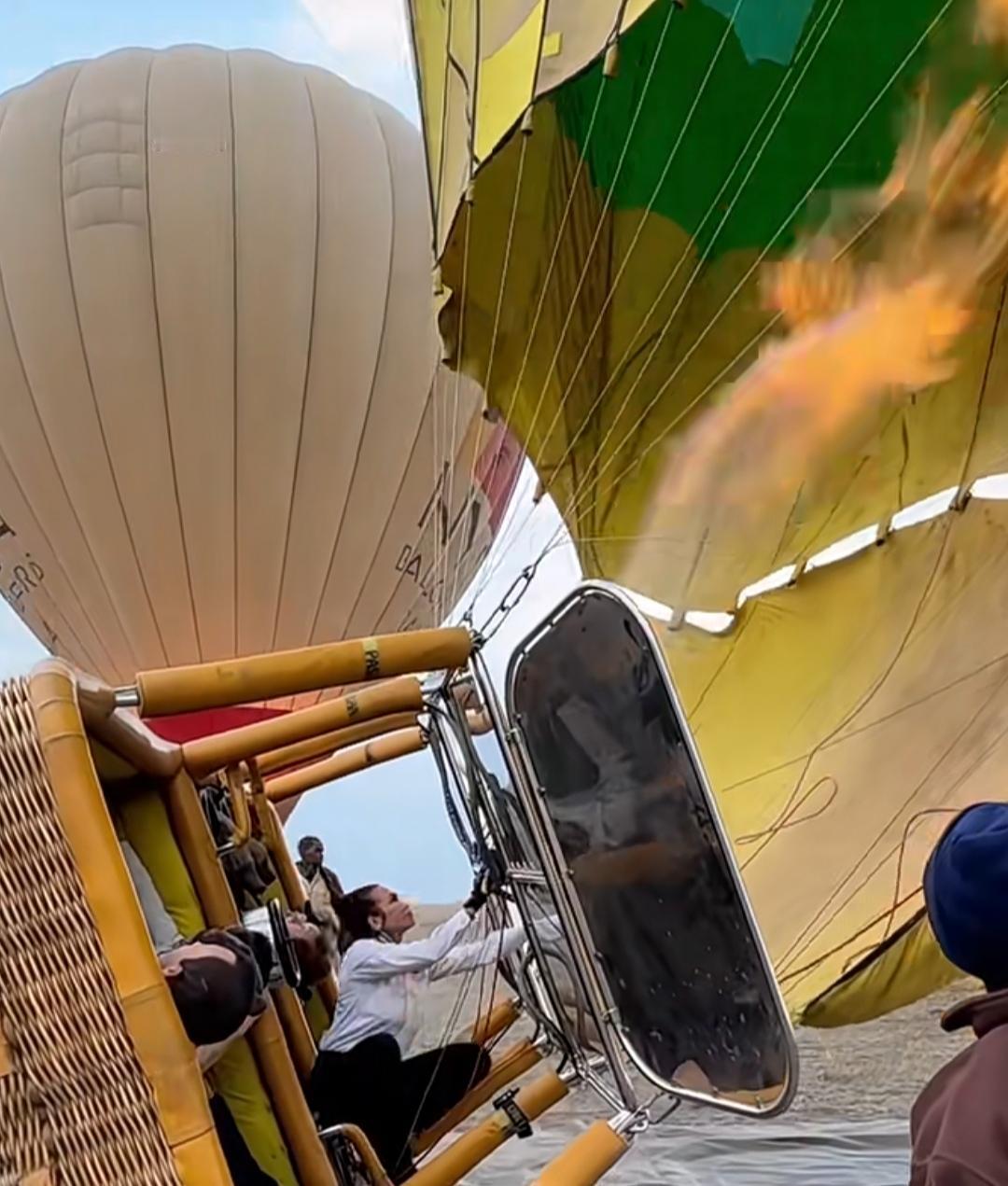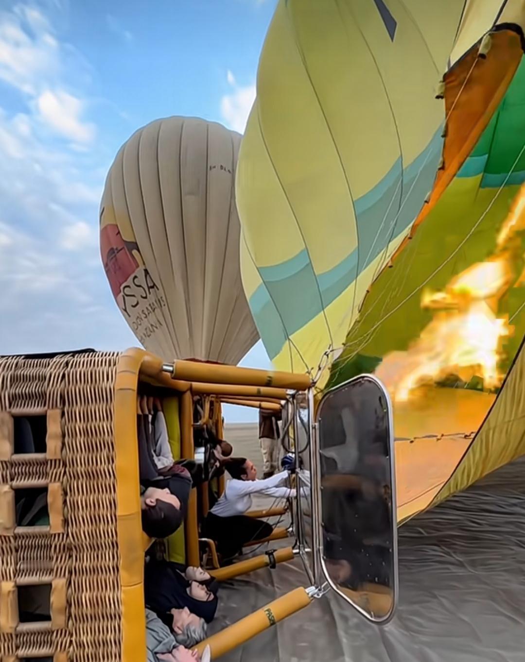 好奇怪,第一次看到国外这样乘坐热气球,人在吊篮里,先躺着,然后驾驶员一点点给气球喷火加热,直到气球立起来,并把吊篮也拉正过来! 不过肯定有坐过的网友,对此有不同的意见,有些网友认为上热气球的时候,篮子本身就是立着的,人爬进去就好。 我觉得给热气球加热这个过程有点危险,真怕把热气球点燃了。 这项观光运动,风险系数好像不低,不知道为什么不给游客每人配一个降落伞。