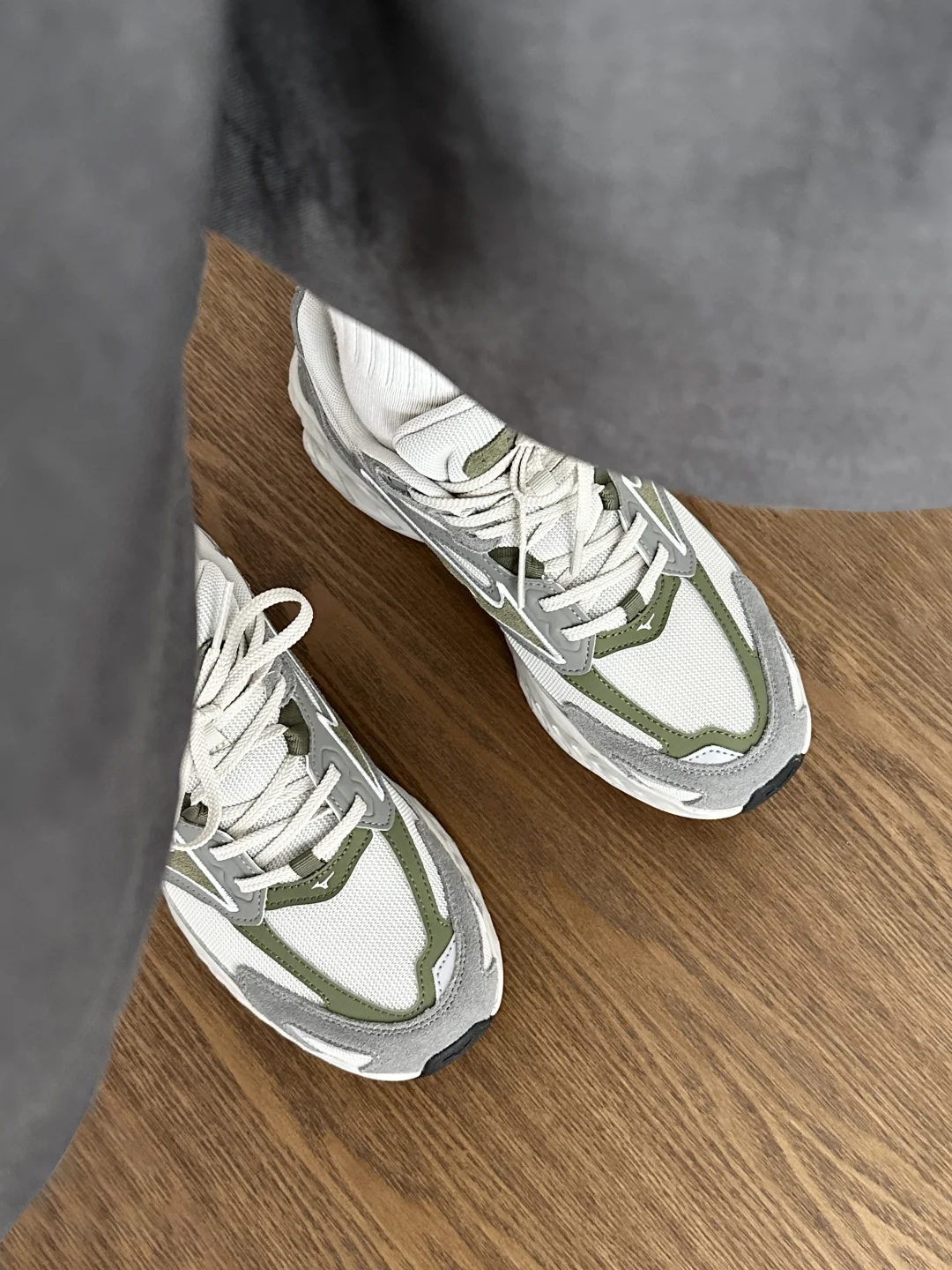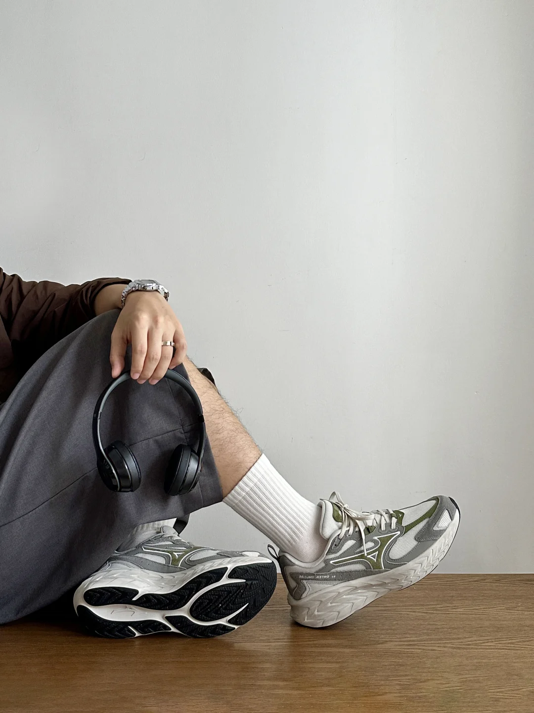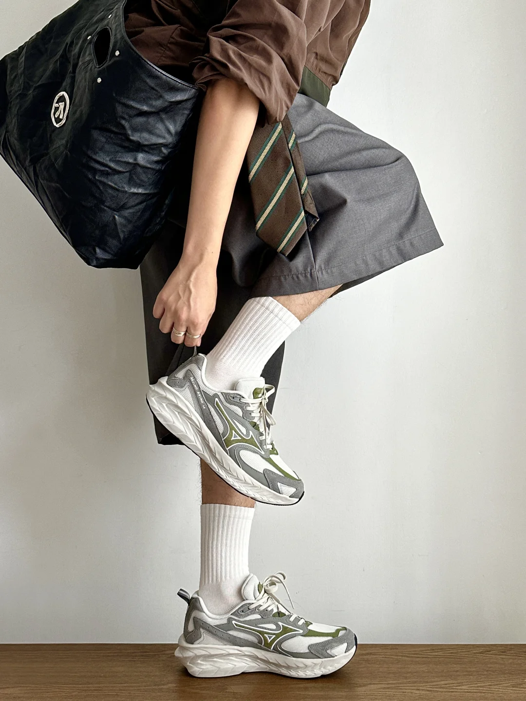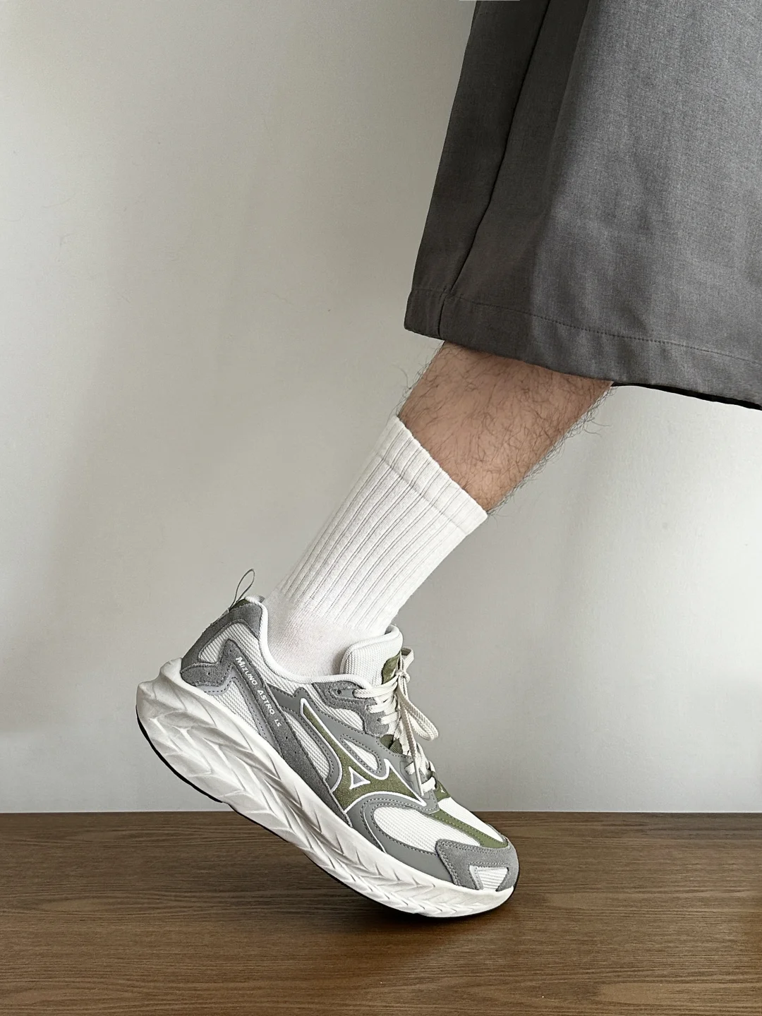美津浓ASTRO LS这双鞋简直是秋日温柔暴击! 低饱和灰调自带朦胧高级感,像给脚踝套了层秋日薄雾!! 脚感惊艳到词穷!中底采用EVA轻质发泡,4CM的厚度轻松增高,踩下去很柔软回弹有韧劲,暴走一天膝盖毫无压力!秋风穿行时不闷不灌风,温感平衡拿捏得恰到好处。 低饱和的灰绿配色很温柔,特别适合秋天citywalk 通勤遛狗、晨跑爬山全能扛,真正实现“一鞋穿三季”。