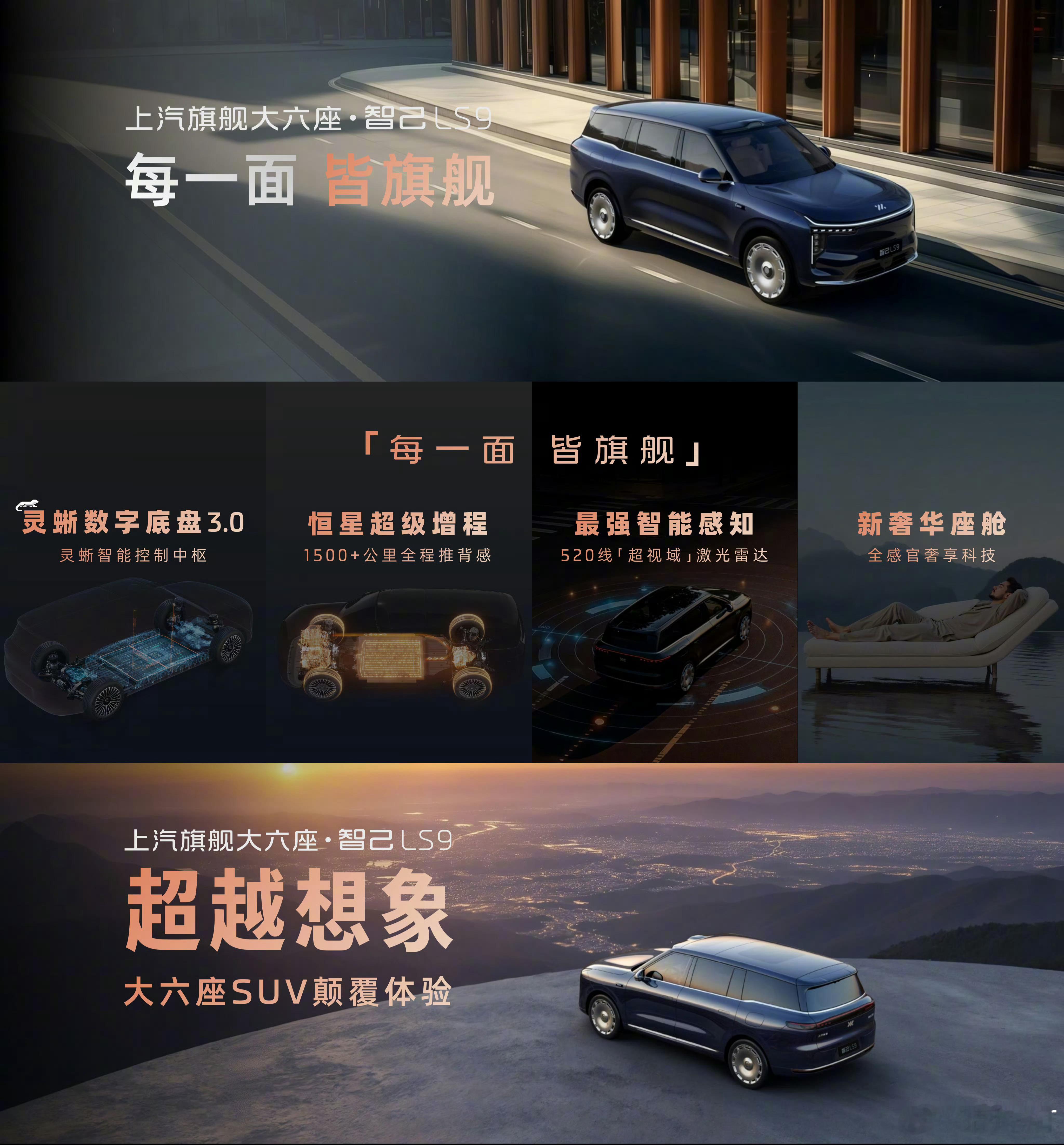 智己官方宣布旗下大六座SUV智己LS9正式上市,新车共推出2款车型,上市权益价32.28-35.28w。搭载恒星超级增程、灵蜥矢量四驱系统、520线超视域激光雷达以及英伟达Thor芯片。新车上市25分钟,大定突破5000台。