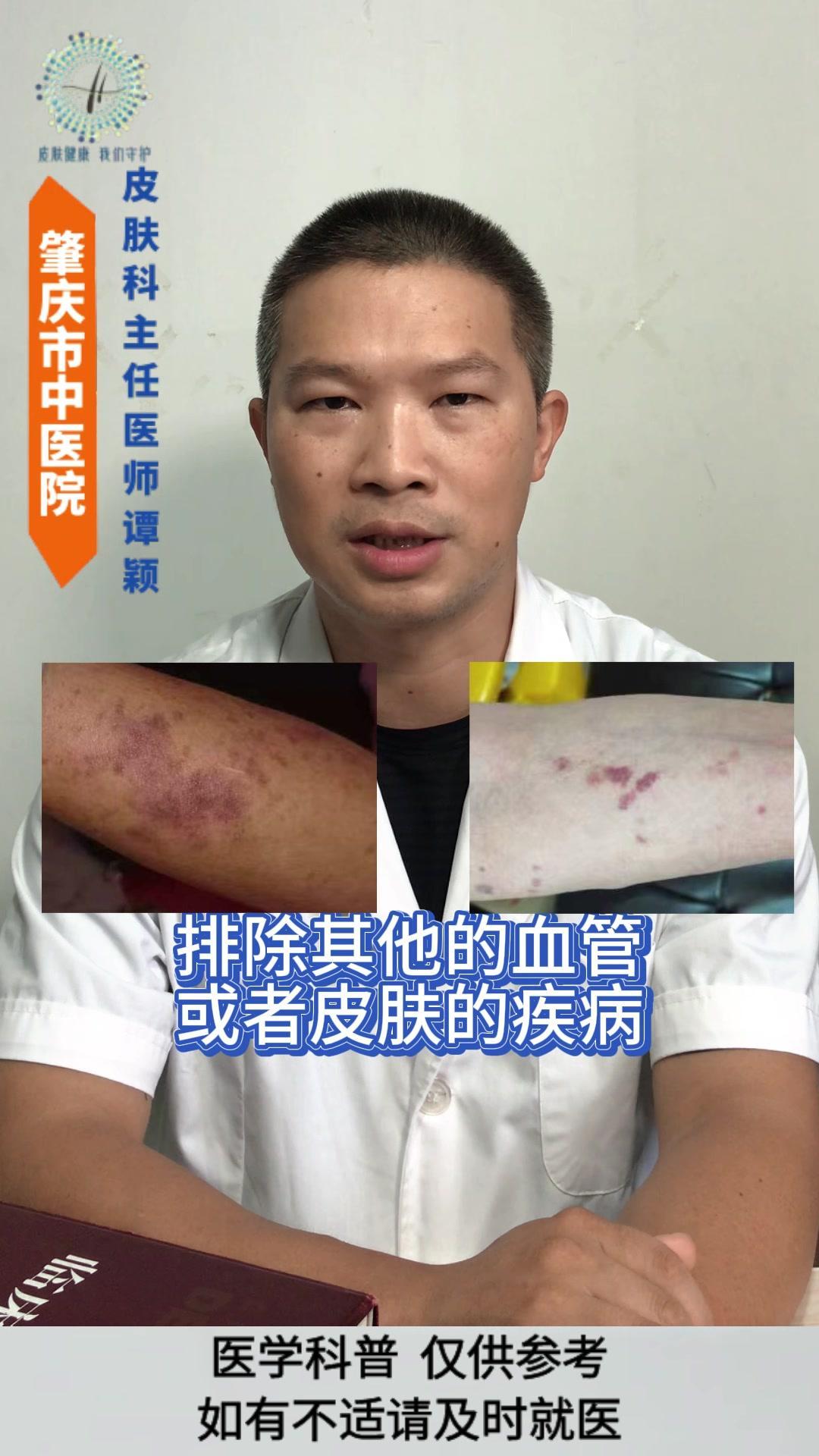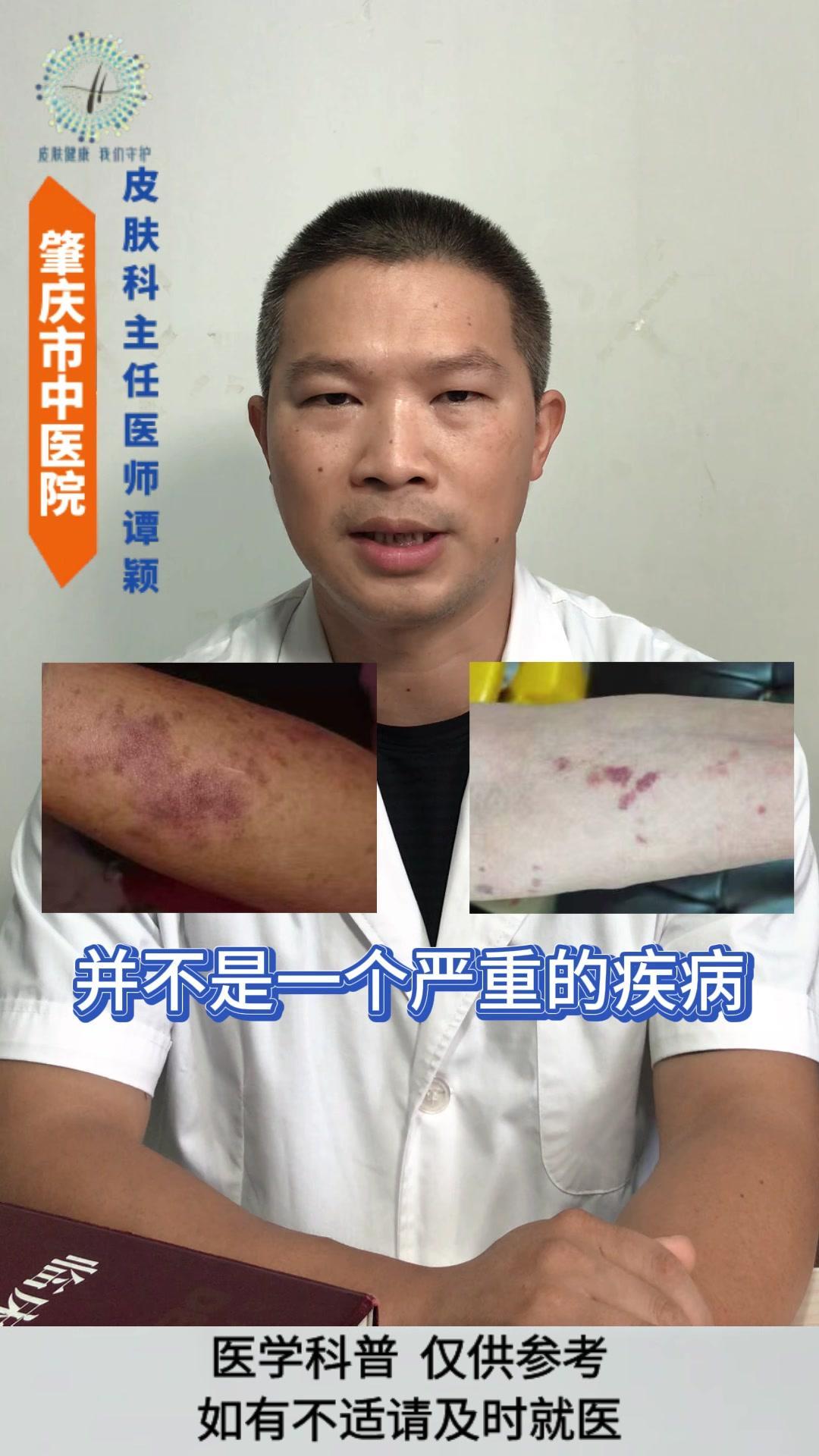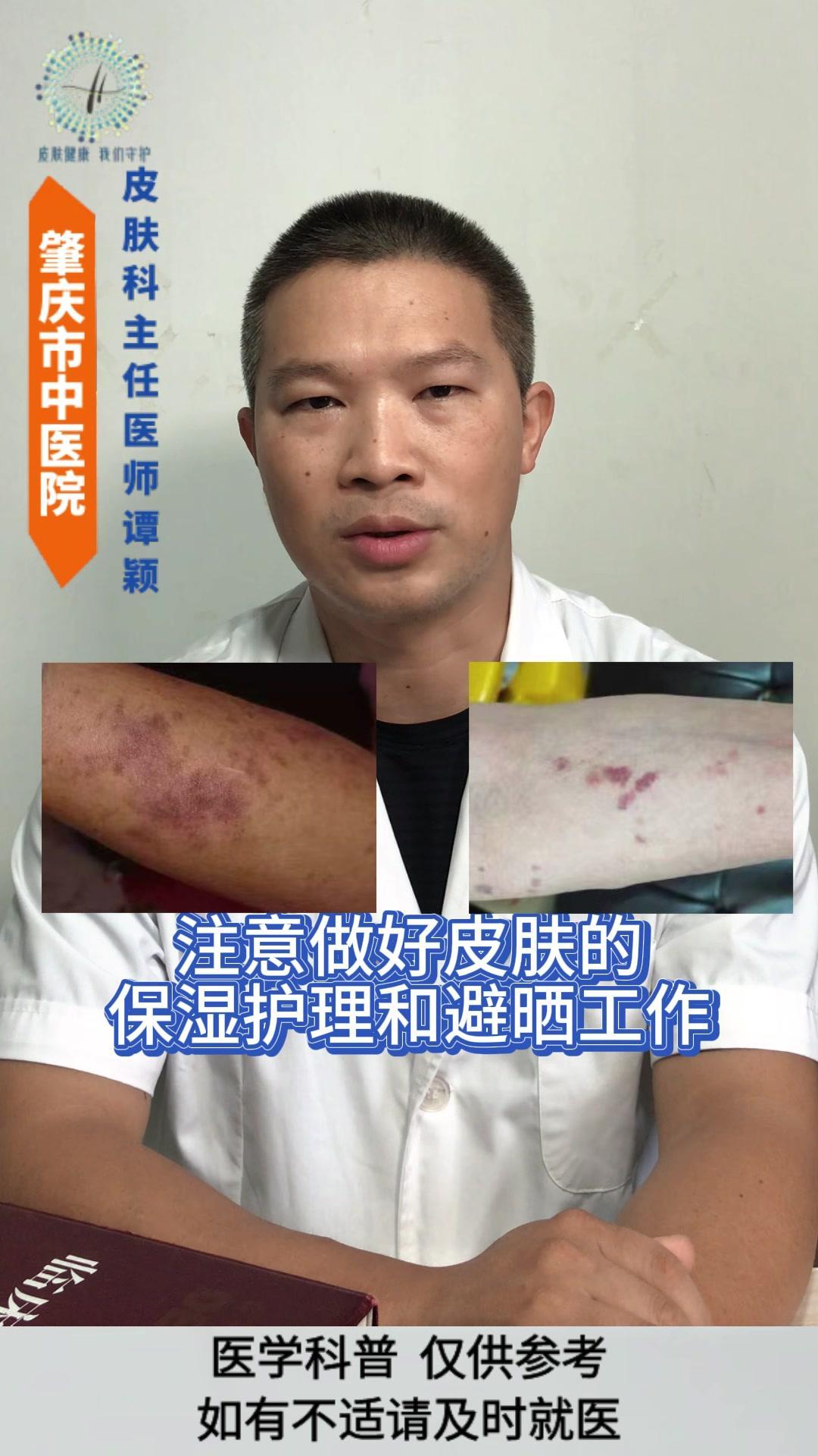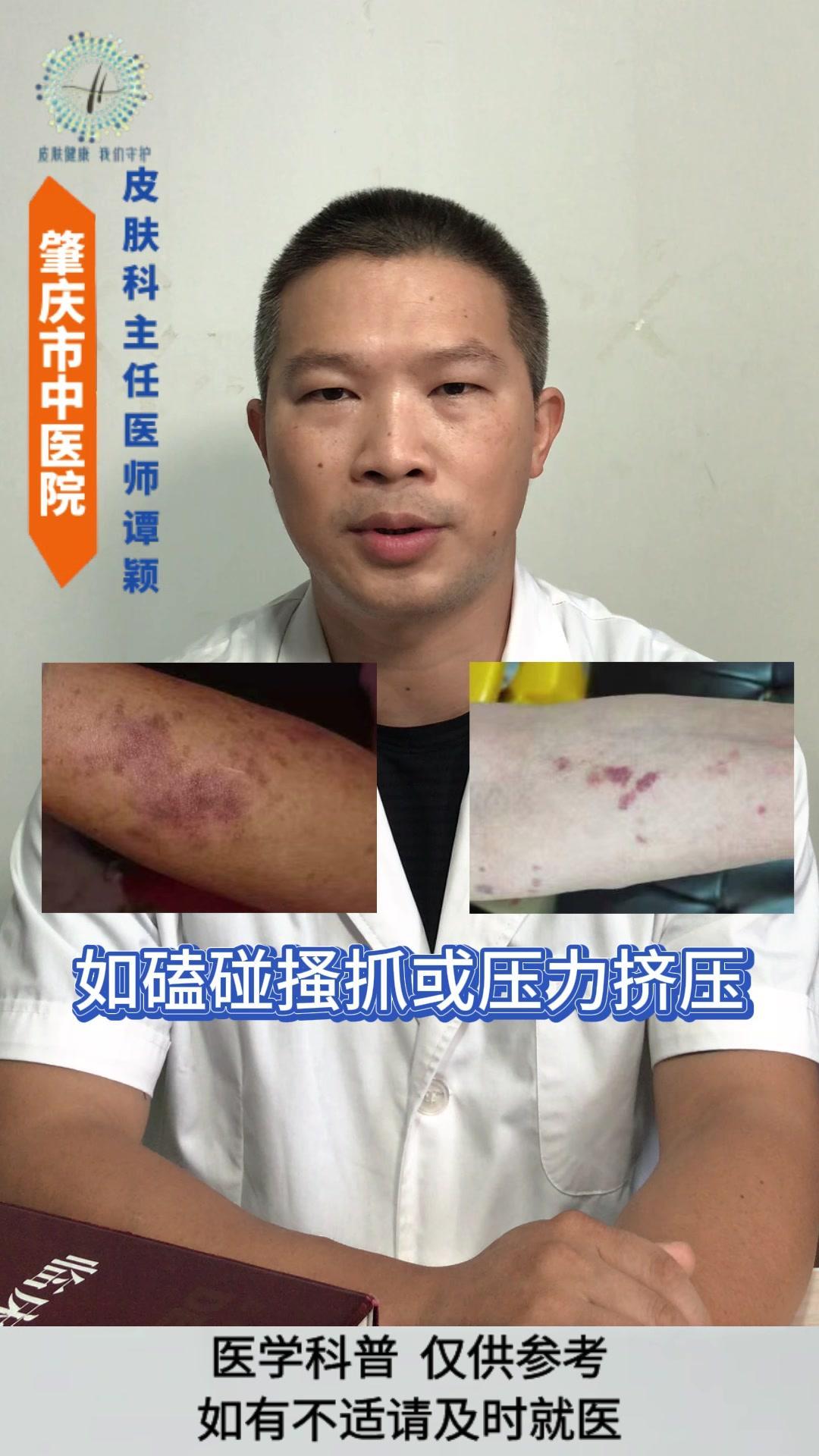💡老年性紫癜: 皮肤尤其是四肢暴露部位的皮肤,容易在磕碰、烧抓或压力挤压后,出现紫红色瘀斑瘀点,一般没有疼痛感,一两个月后会慢慢消退,但容易反复出现。 💡发生原因: 与皮肤以及血管的老化有着密切的关系。 1️⃣随着年龄的增长,皮肤逐渐老化,真皮层中的胶原蛋白和弹性纤维减少,使得皮肤逐渐变薄,保护作用逐渐减弱。 2️⃣血管的老化会导致皮下小血管壁变薄脆弱,受到轻微的外力刺激就容易破裂。 3️⃣过度的暴晒破坏皮肤中的胶原蛋白和血管,导致皮肤加速老化。 4️⃣某些药物可能会增加血管的脆性。 5️⃣某些营养缺乏的情况也会影响血管的强度。 💡影响: 皮肤老化的自然表现,不是严重的疾病,但可能会影响皮肤外观和心理健康。 💡注意事项: 1️⃣注意保护好皮肤,减少外伤。 2️⃣注意做好皮肤的保湿护理和避晒工作,不要用热水烫洗皮肤,也不要过度的清洁皮肤。 3️⃣注意科学营养的饮食搭配,避免过度忌口。 老年性紫癜 皮肤老化 健康科普 皮肤病