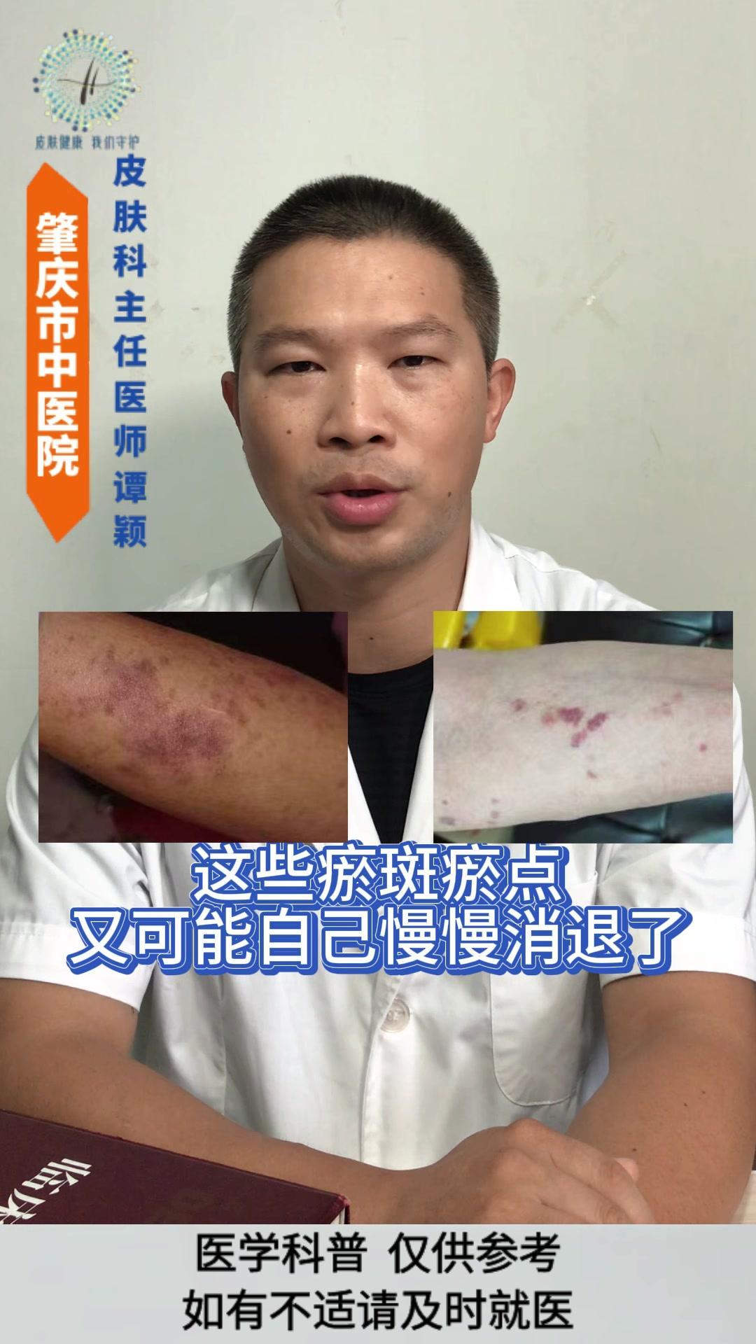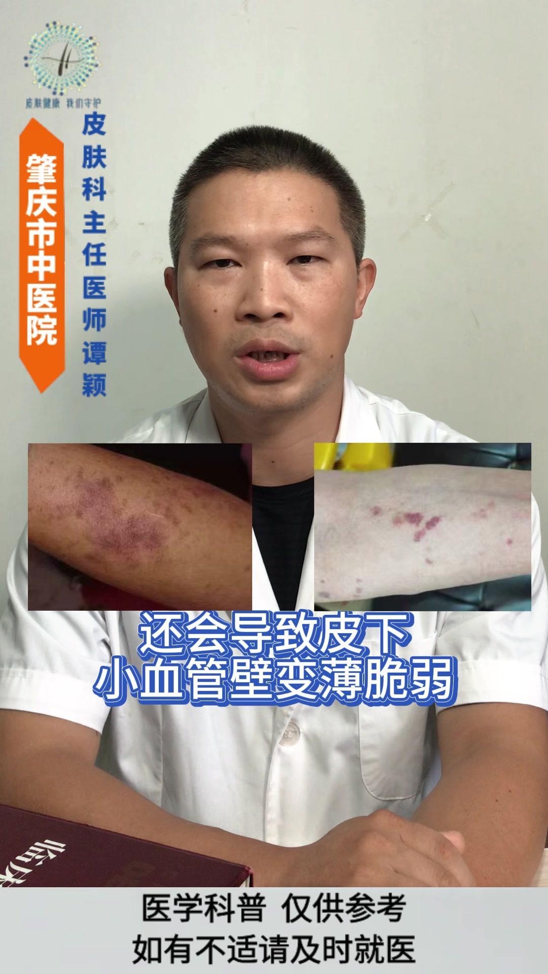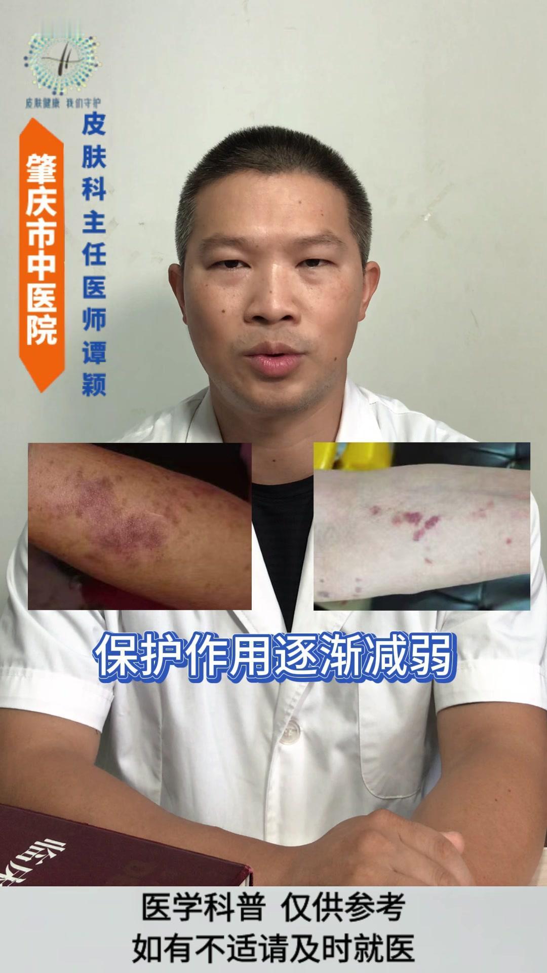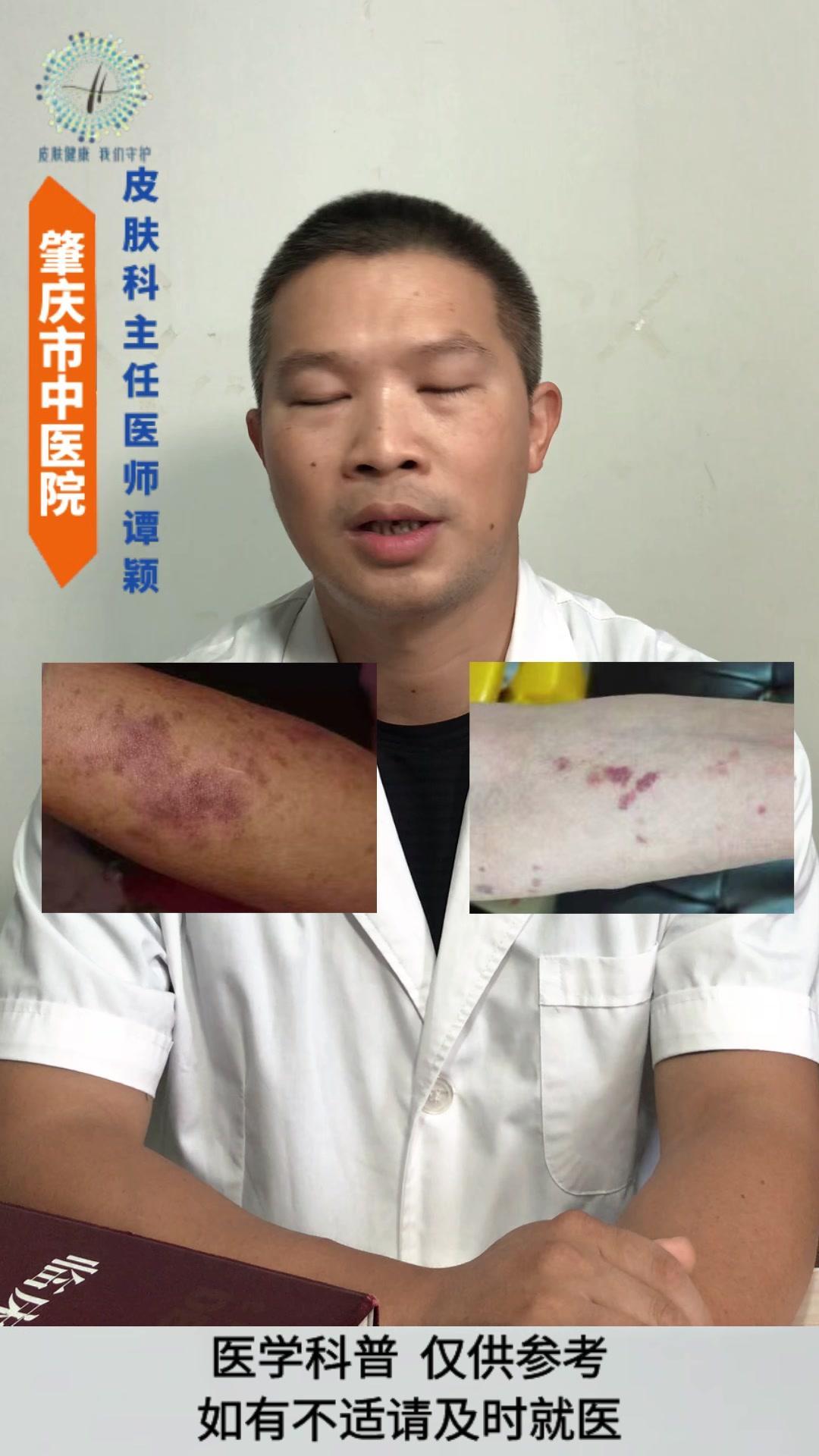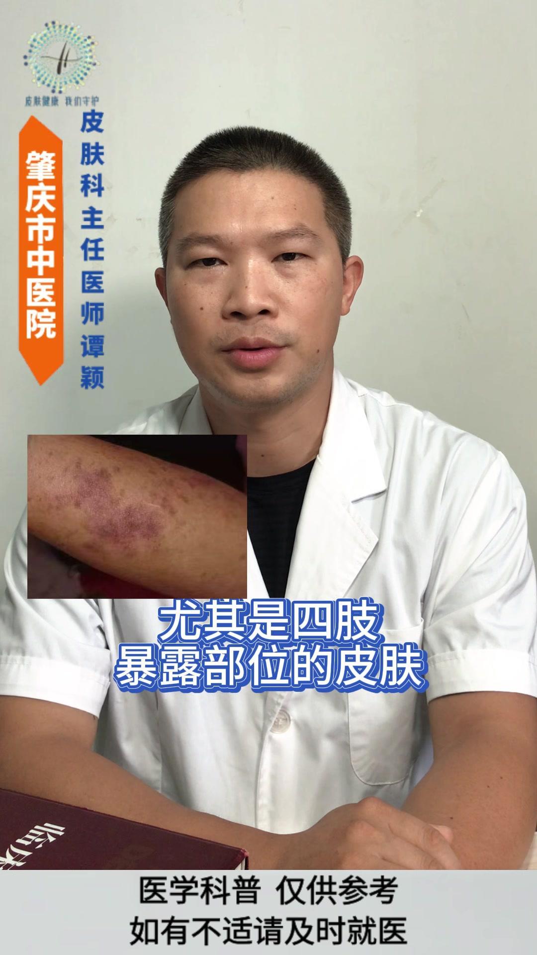 💡老年性紫癜: 皮肤尤其是四肢暴露部位的皮肤,容易在磕碰、烧抓或压力挤压后,出现紫红色瘀斑瘀点,一般没有疼痛感,一两个月后会慢慢消退,但容易反复出现。 💡发生原因: 与皮肤以及血管的老化有着密切的关系。 1️⃣随着年龄的增长,皮肤逐渐老化,真皮层中的胶原蛋白和弹性纤维减少,使得皮肤逐渐变薄,保护作用逐渐减弱。 2️⃣血管的老化会导致皮下小血管壁变薄脆弱,受到轻微的外力刺激就容易破裂。 3️⃣过度的暴晒破坏皮肤中的胶原蛋白和血管,导致皮肤加速老化。 4️⃣某些药物可能会增加血管的脆性。 5️⃣某些营养缺乏的情况也会影响血管的强度。 💡影响: 皮肤老化的自然表现,不是严重的疾病,但可能会影响皮肤外观和心理健康。 💡注意事项: 1️⃣注意保护好皮肤,减少外伤。 2️⃣注意做好皮肤的保湿护理和避晒工作,不要用热水烫洗皮肤,也不要过度的清洁皮肤。 3️⃣注意科学营养的饮食搭配,避免过度忌口。 老年性紫癜 皮肤老化 健康科普 皮肤病